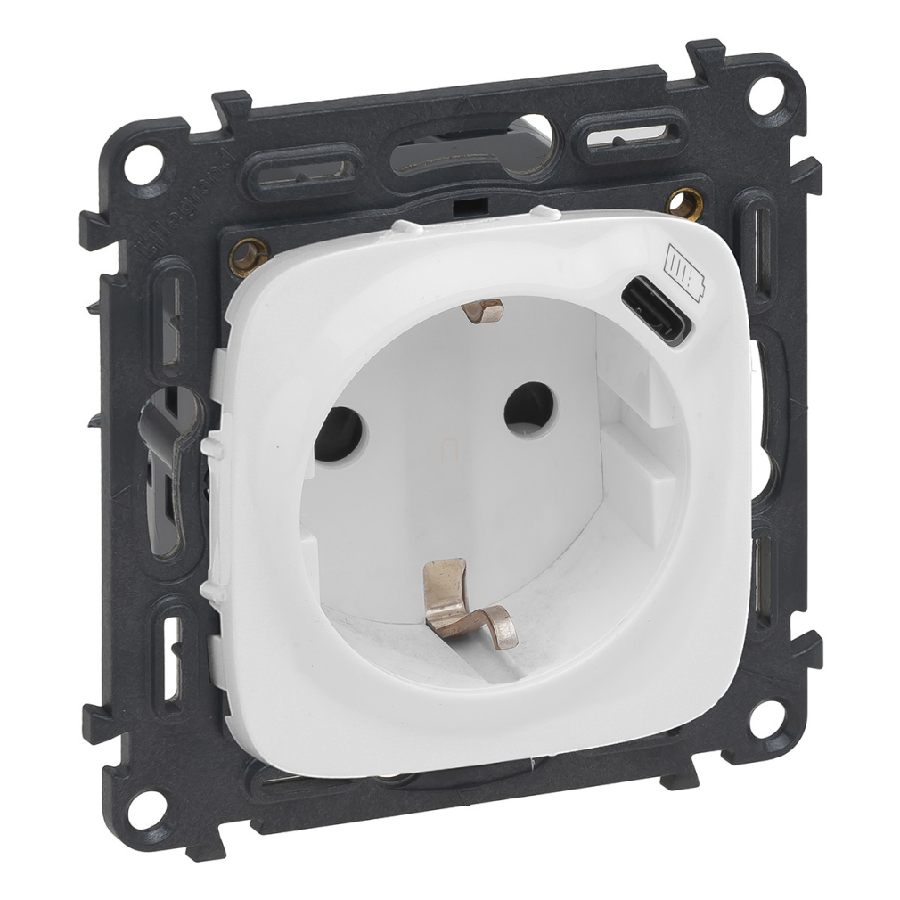 Legrand Valena Allure 2P+F csatlakozóaljzat+ USB C-túpusú 1, 5A-5V-7, 5W töltőaljzat, körmös/csavaros rögz, rugós beköt, fehér - 753005