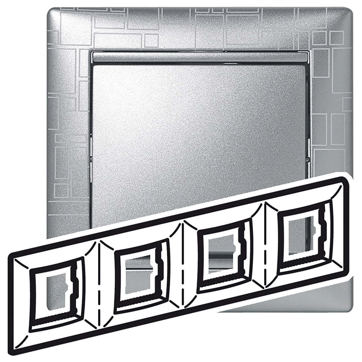 Valena alumínium négyzetmintás keret négyes 770344 Legrand