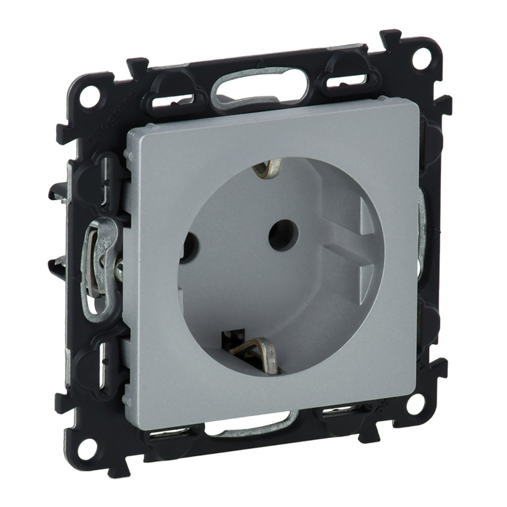 Legrand Valena Life 2P+F csatlakozóaljzat, rugós vezetékbekötéssel alumínium - 753321