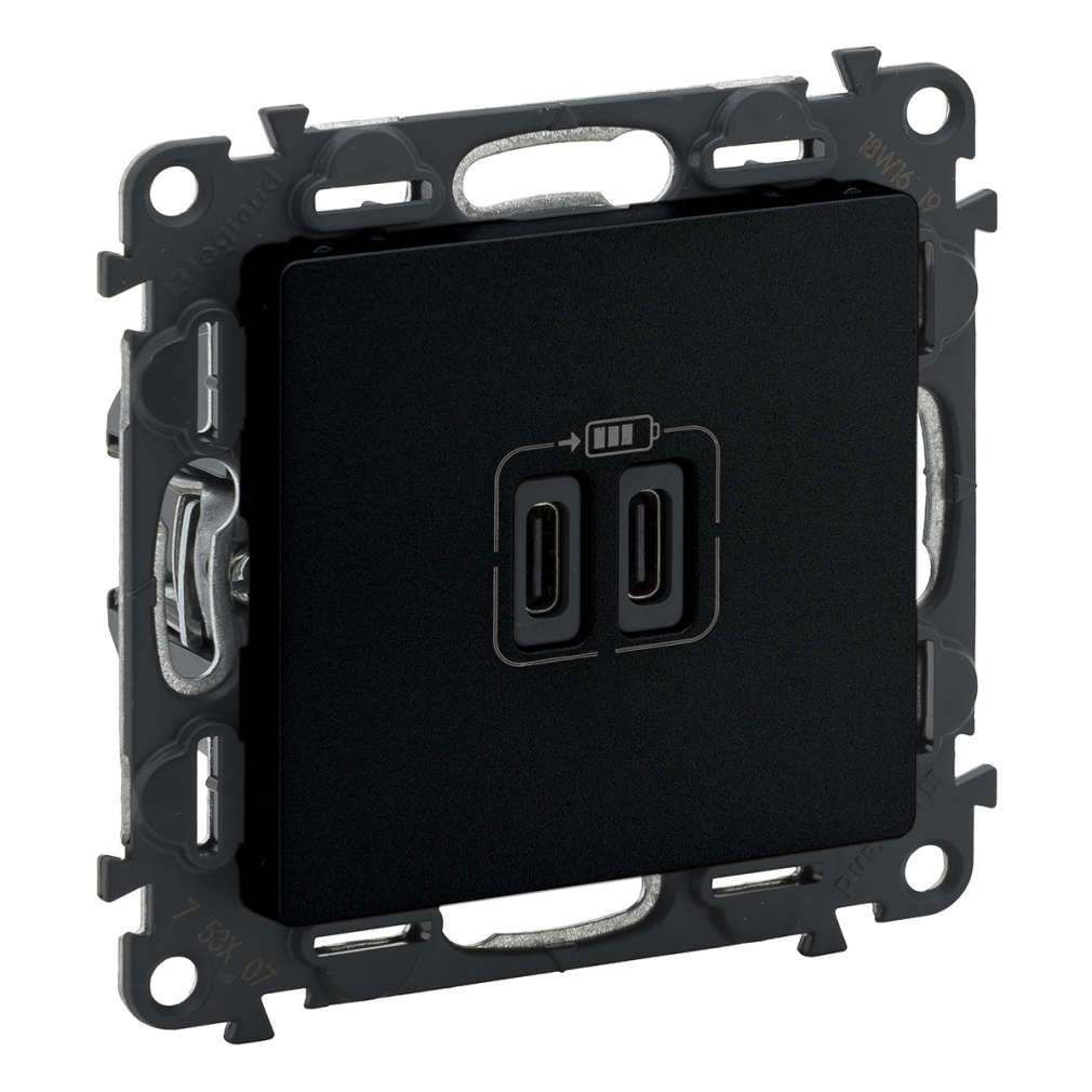 Legrand Valena Life kettős USB-C + USB-C csatlakozóaljzat 3A–15W, fekete - 756307