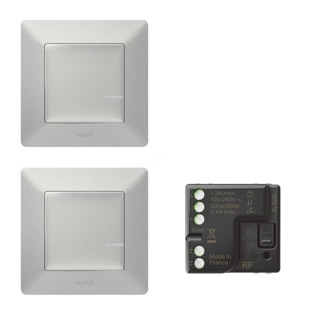 Netatmo 752350 Valena Life alumínium Párosított szett: Alternatív kapcsolás mikromodul segítségével - 2 vezeték nélküli kapcsoló + mikromodul Legrand