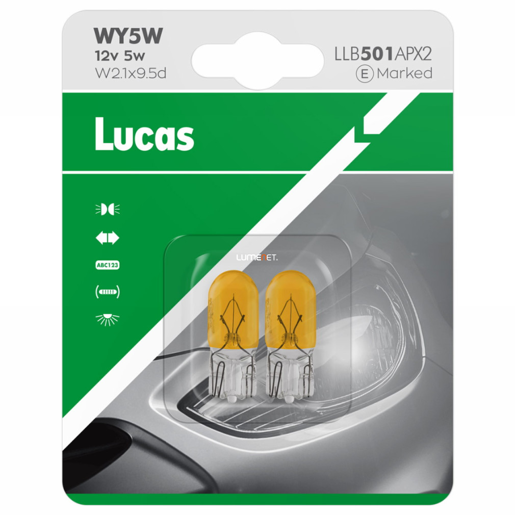 Lucas 12V WY5W sárga jelzőizzó, 2db/bliszter