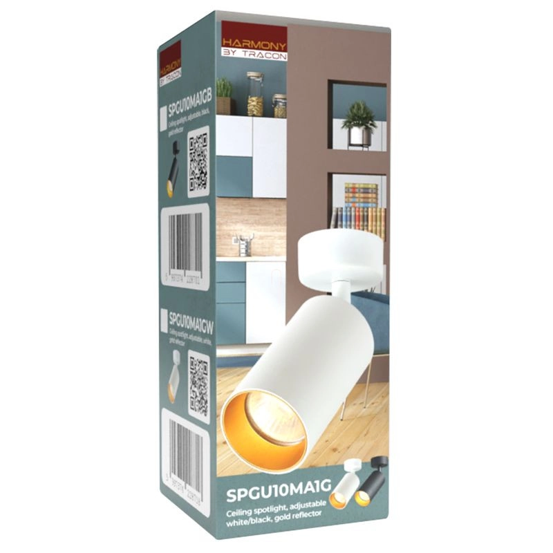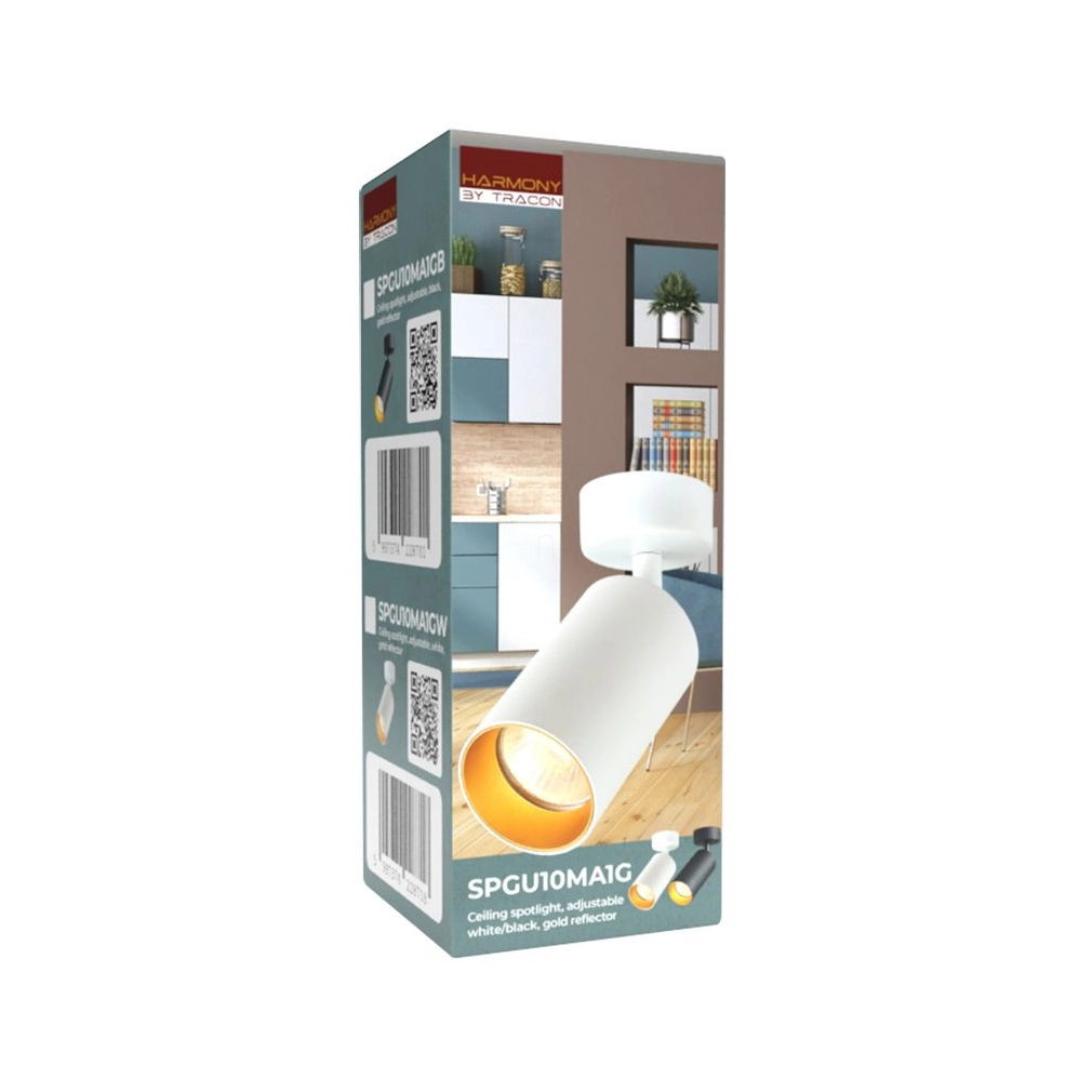 Mennyezeti állítható spot lámpatest, fehér, arany 1xGU10, max.35W SPGU10MA1GW Tracon