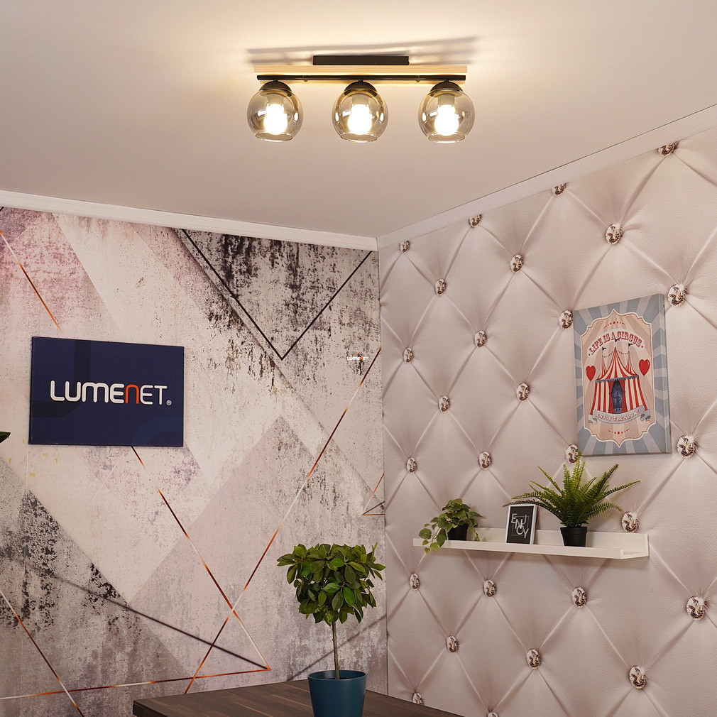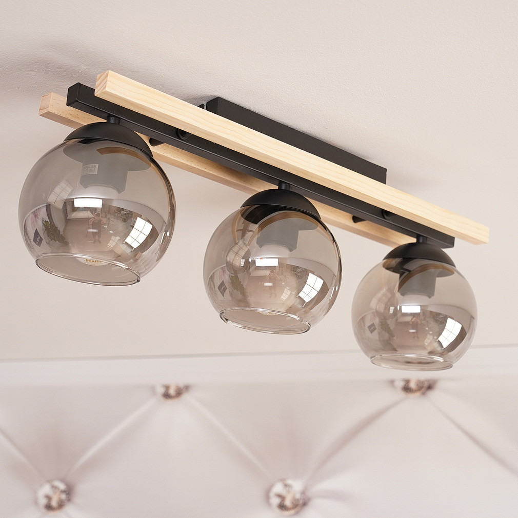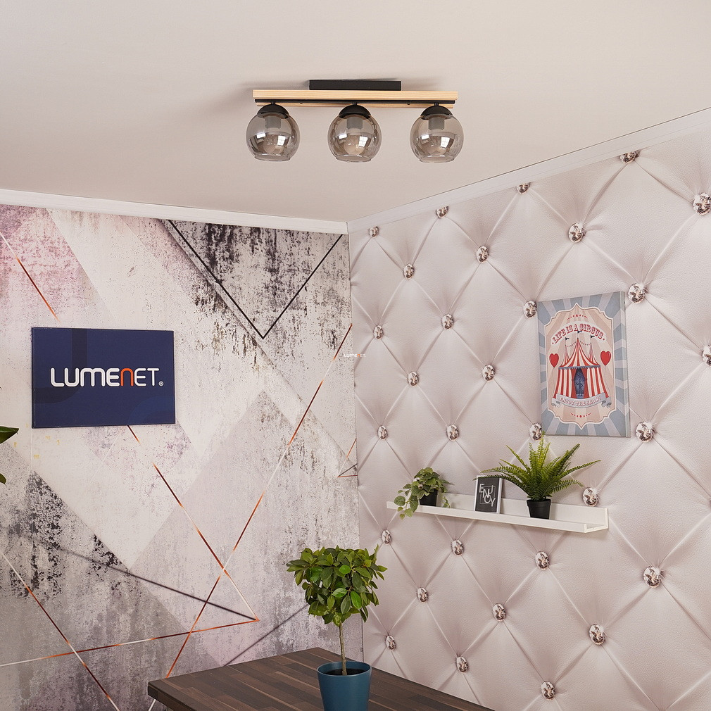 Ez a füstszínű mennyezeti lámpa három foglalattal elegáns és modern megjelenést kölcsönöz bármelyik helyiségnek.