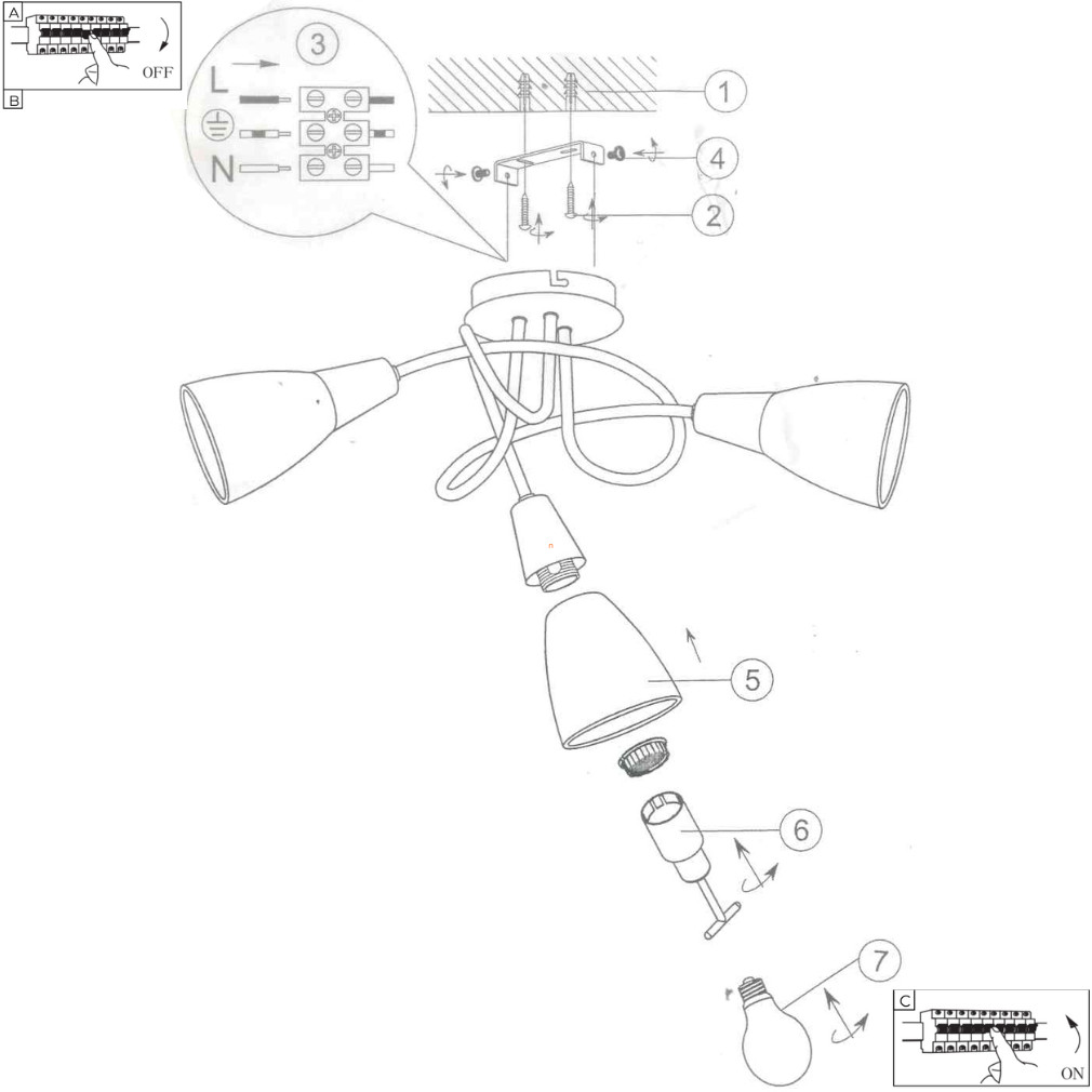 Mennyezeti lámpa 3 foglalattal - Jenna Rábalux 5532