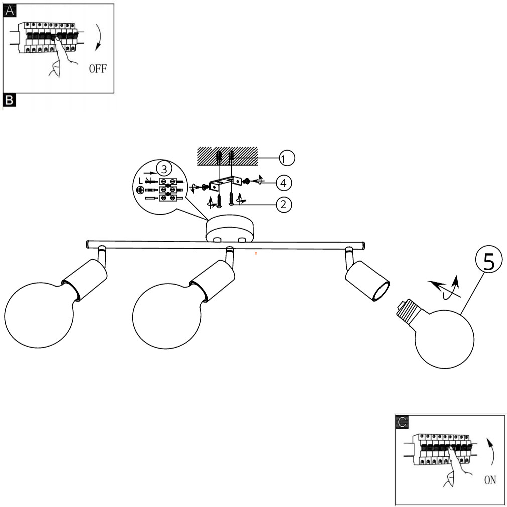 Ez a stílusos mennyezeti lámpa három foglalattal tökéletes választás, hogy otthonod bármelyik helyiségét elegánsan megvilágítsd.
