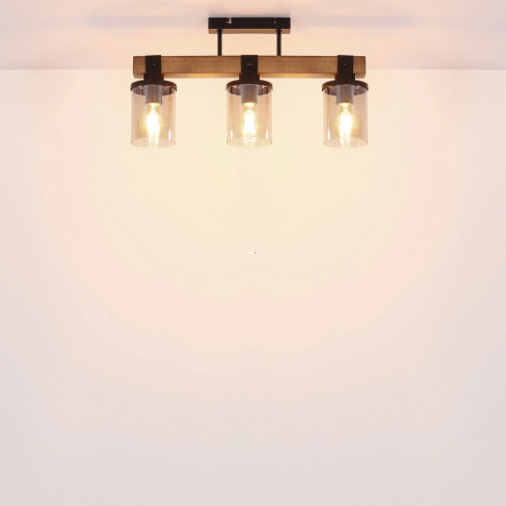 A Lila Globo 15555-3D mennyezeti lámpa három E27-es foglalattal rendelkezik, amelyek cserélhető fényforrásokat támogatnak, így a fényáram, színhőmérséklet és teljesítmény igény szerint választható. A lámpatest üveg és fém anyagokból készült, matt fekete és füstszínű felülettel. A lámpa méretei 520 mm hosszúság, 100 mm szélesség és 286 mm magasság, tömege 1,77 kg. IP20 védettséggel ellátott, beltéri használatra alkalmas. A csomag nem tartalmaz fényforrást. A termék logisztikai kódja: 15555-3D, gyártója a Globo.