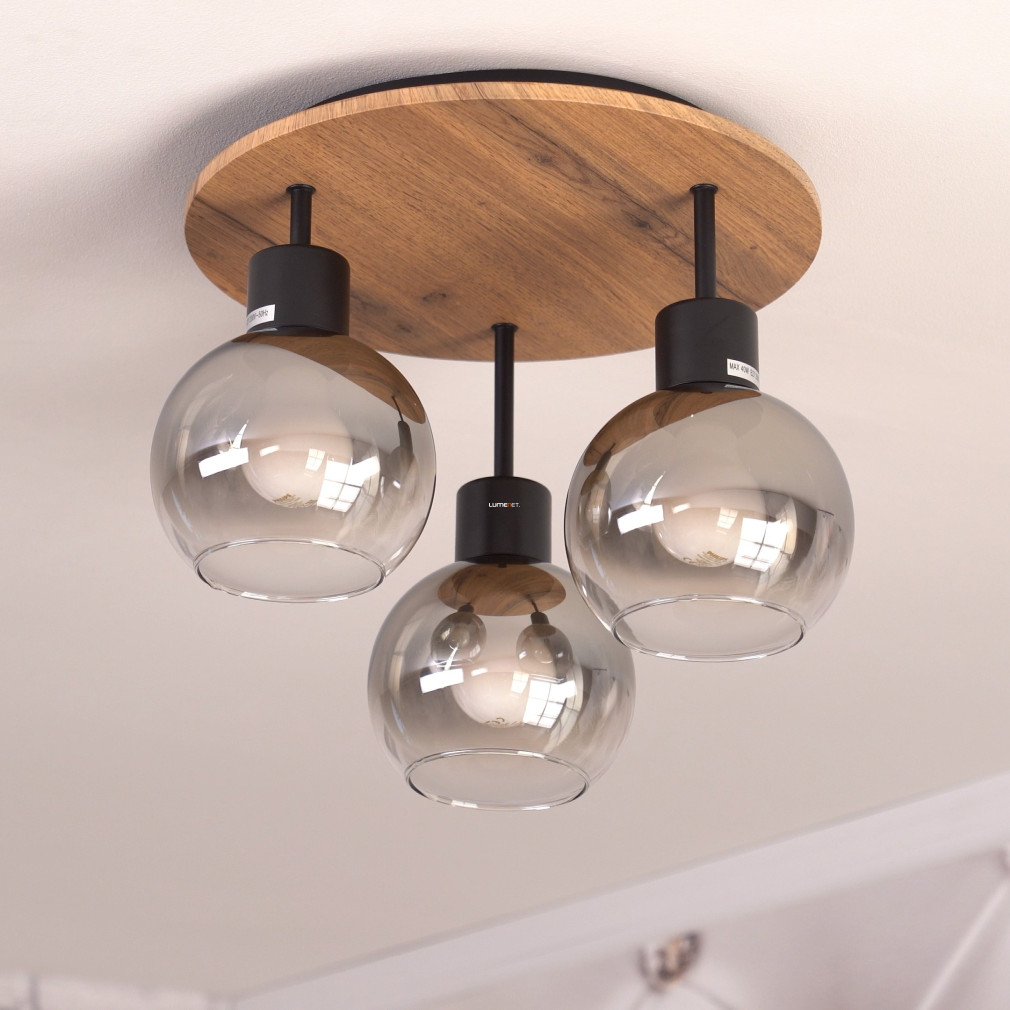 Ez a mennyezeti lámpa három foglalattal és elegáns üveg-fém kombinációval tökéletes választás bármely modern otthonba.