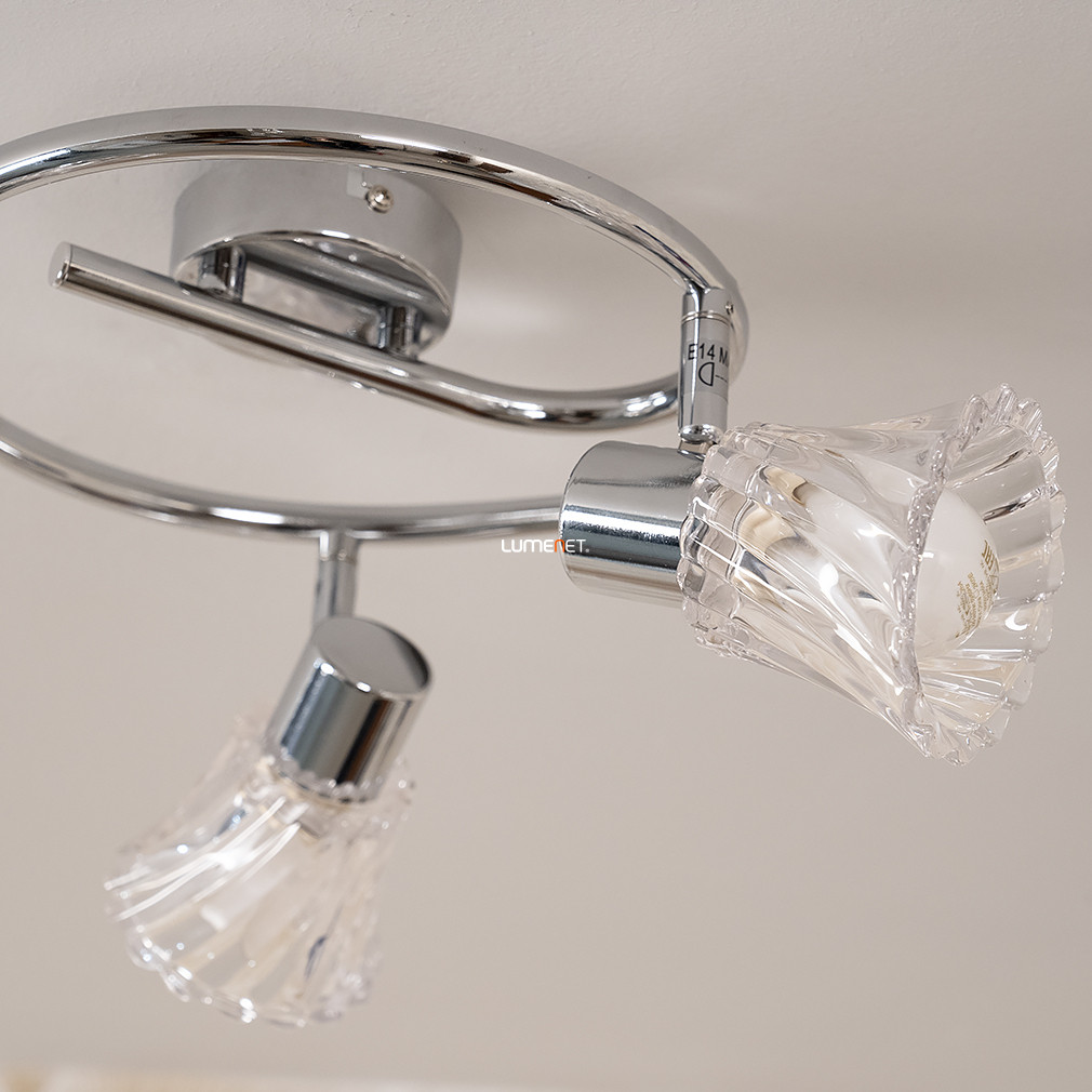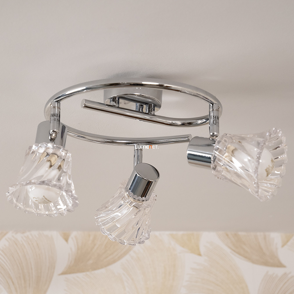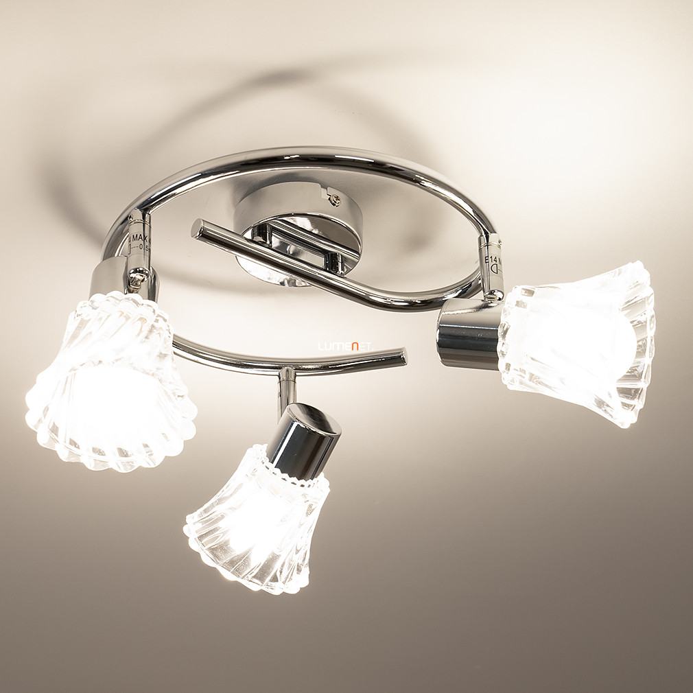 A mennyezeti lámpa, amely három E14 foglalattal rendelkezik, tökéletes választás azok számára, akik a modern és elegáns megjelenést keresik otthonukban. Az üveg és fém anyagok kombinációja nemcsak esztétikus, hanem tartós is, így hosszú távon biztosítja a minőségi világítást. A lámpa átmérője 360 mm, magassága pedig 145 mm, ami ideális méretet biztosít a legtöbb helyiségbe. A króm és áttetsző színek harmonikus összhangja bármilyen enteriőrbe könnyedén beilleszthető. A lámpa nem tartalmaz fényforrást, így lehetőséged van a saját igényeidnek megfelelő fényforrást választani, legyen az meleg vagy hideg fény. A cserélhető fényforrásoknak köszönhetően a fényáram és a színhőmérséklet is testre szabható, így mindig a megfelelő hangulatot teremtheted meg otthonodban. A lámpa nem szabályozható, de a három foglalat lehetőséget ad arra, hogy különböző fényerősségű fényforrásokat használj, így variálhatod a világítást a különböző tevékenységekhez. A lámpa felszerelése egyszerű, és a tartós anyagoknak köszönhetően hosszú élettartamot biztosít. Ez a mennyezeti lámpa nemcsak funkcionális, hanem dekoratív eleme is lehet otthonodnak, amely minden vendéget lenyűgöz.