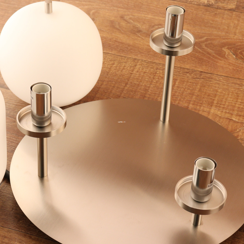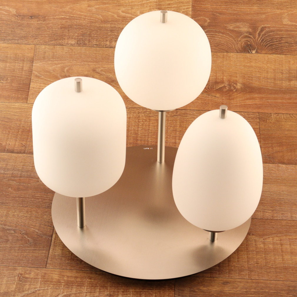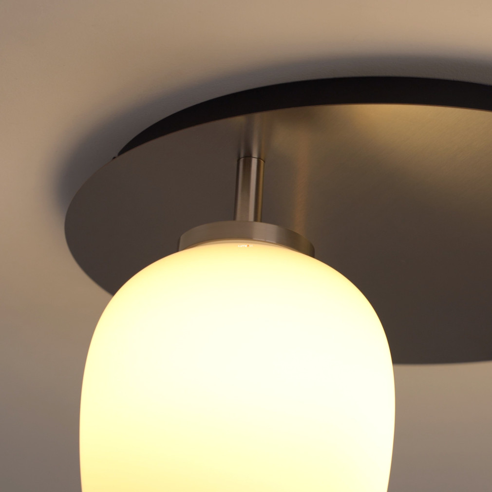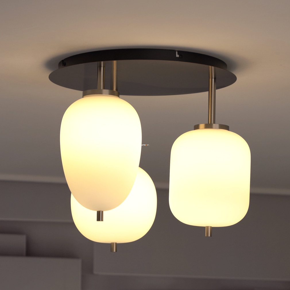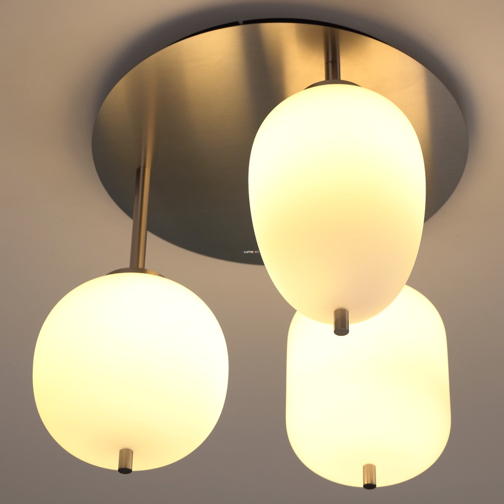 Ez a mennyezeti lámpa három különböző üveg búrával és elegáns nikkel, opál színkombinációval varázsolja el otthonodat.