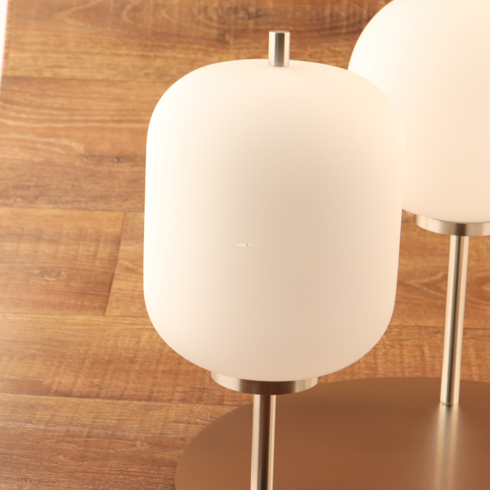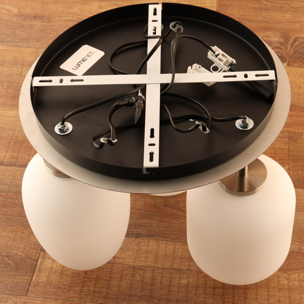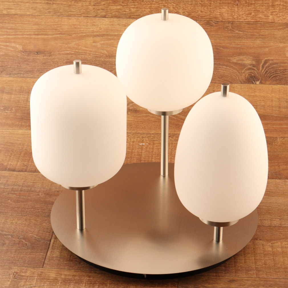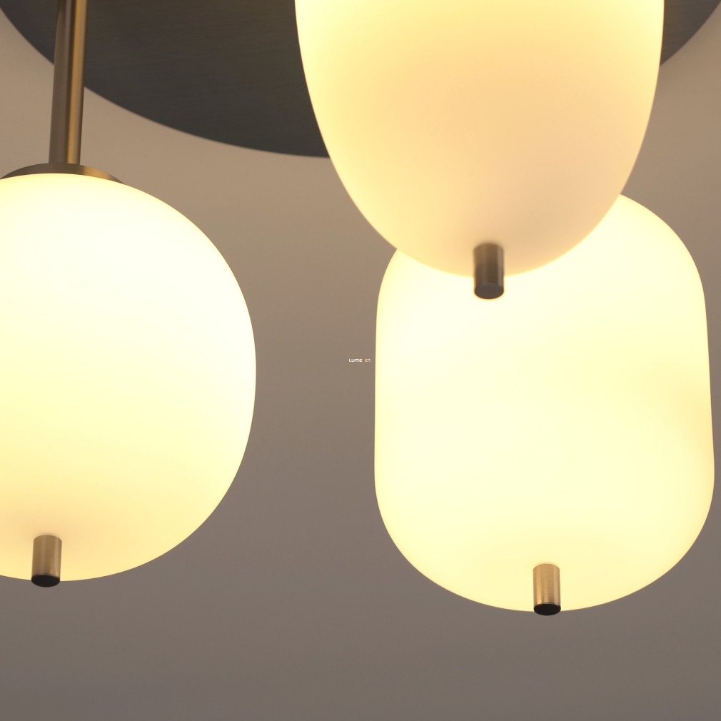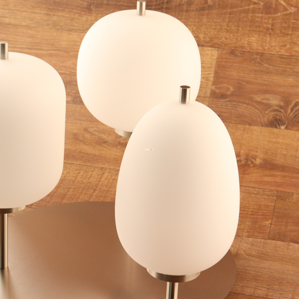 Ez a mennyezeti lámpa három különböző üveg búrával és elegáns nikkel, opál színkombinációval varázsolja el otthonodat.