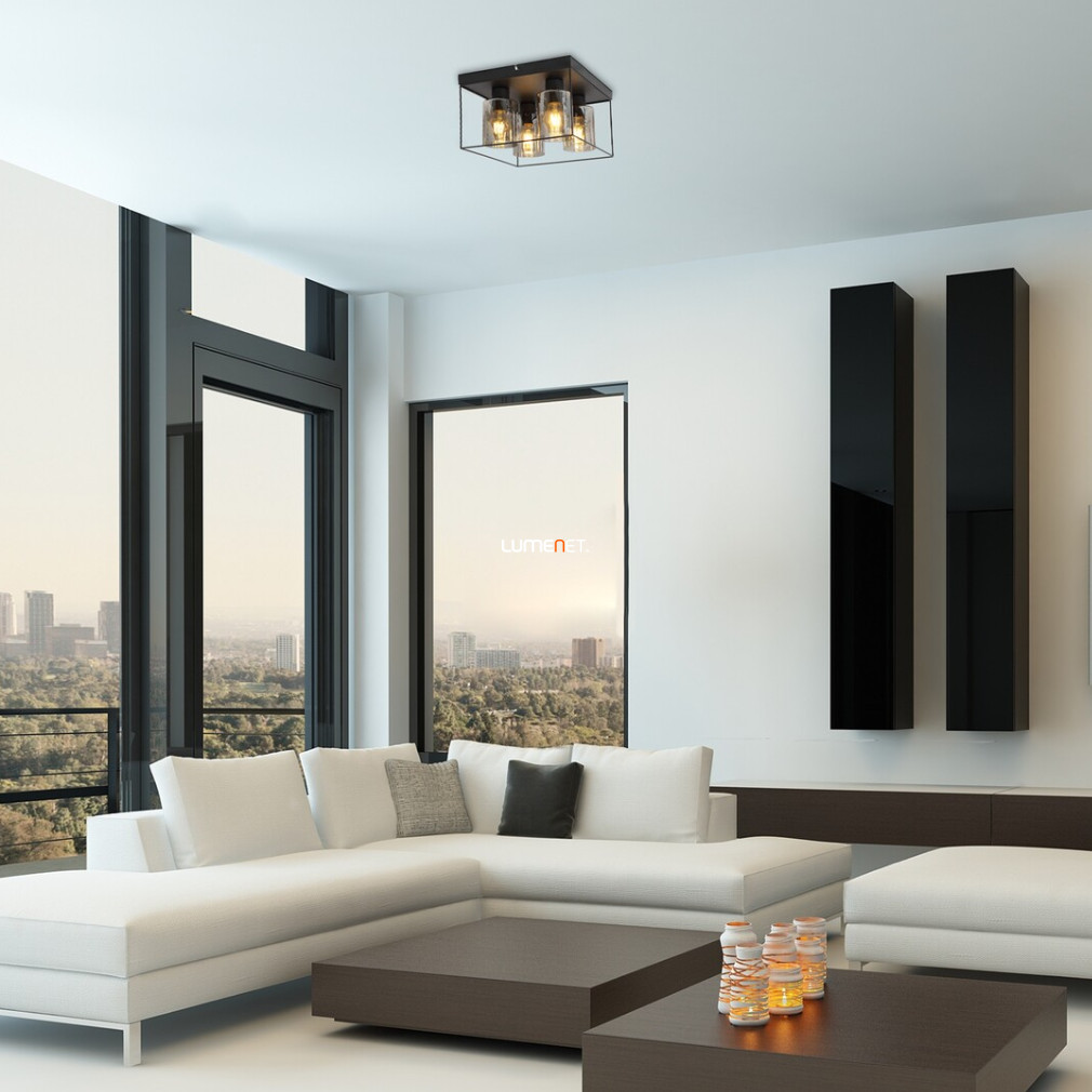 A Chadwick Rábalux 71034 mennyezeti lámpa modern kialakítású, négy darab E27-es foglalattal rendelkezik, amelyek lehetővé teszik a cserélhető fényforrások használatát. A lámpatest fém és üveg anyagból készült, fekete és füstszínű kivitelben, így esztétikailag illeszkedik a korszerű lakóterekhez. A termék 2,06 kg tömegű, méretei 300 mm hosszúság, 300 mm szélesség és 200 mm magasság. A lámpa IP20 védettséggel rendelkezik, ami beltéri használatra teszi alkalmassá, por elleni alapvető védelmet biztosítva. A fényforrást nem tartalmazza, így a világítási teljesítmény, fényáram és színhőmérséklet a választott izzótól függ. A csomagolás méretei: 31 cm szélesség, 21 cm hosszúság és 31 cm magasság. A terméket a Rábalux gyártja, logisztikai kódja: 71034.