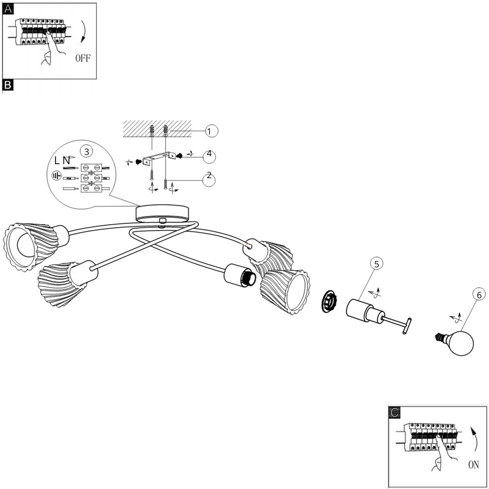 Mennyezeti lámpa 4 foglalattal - Hestia Rábalux 5302
