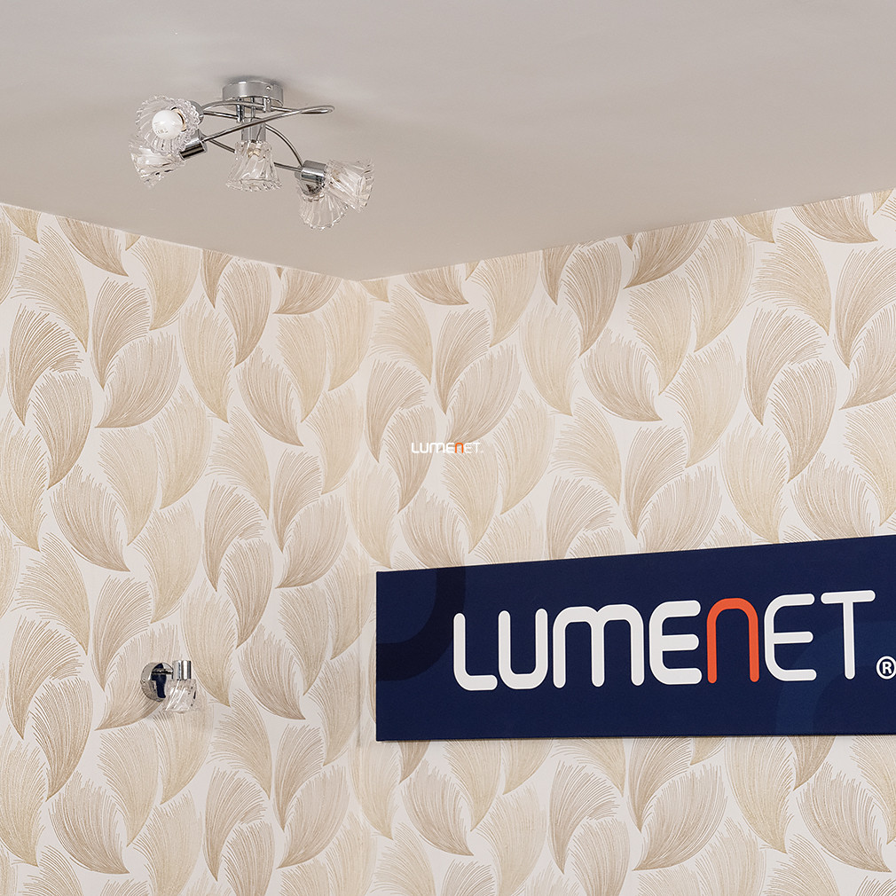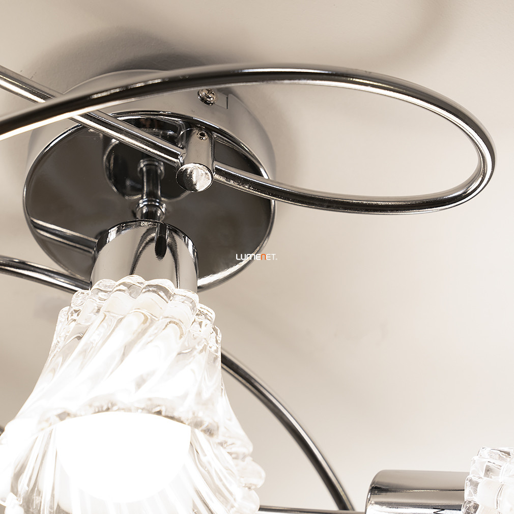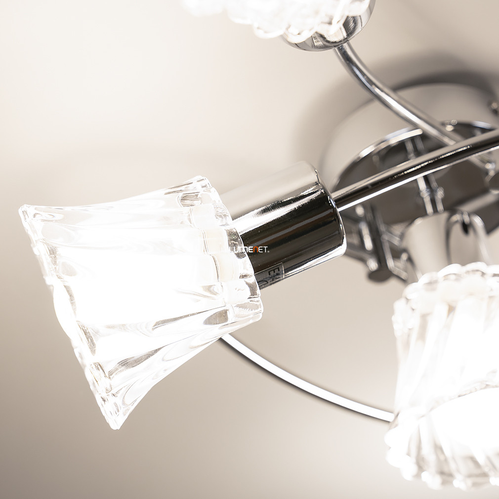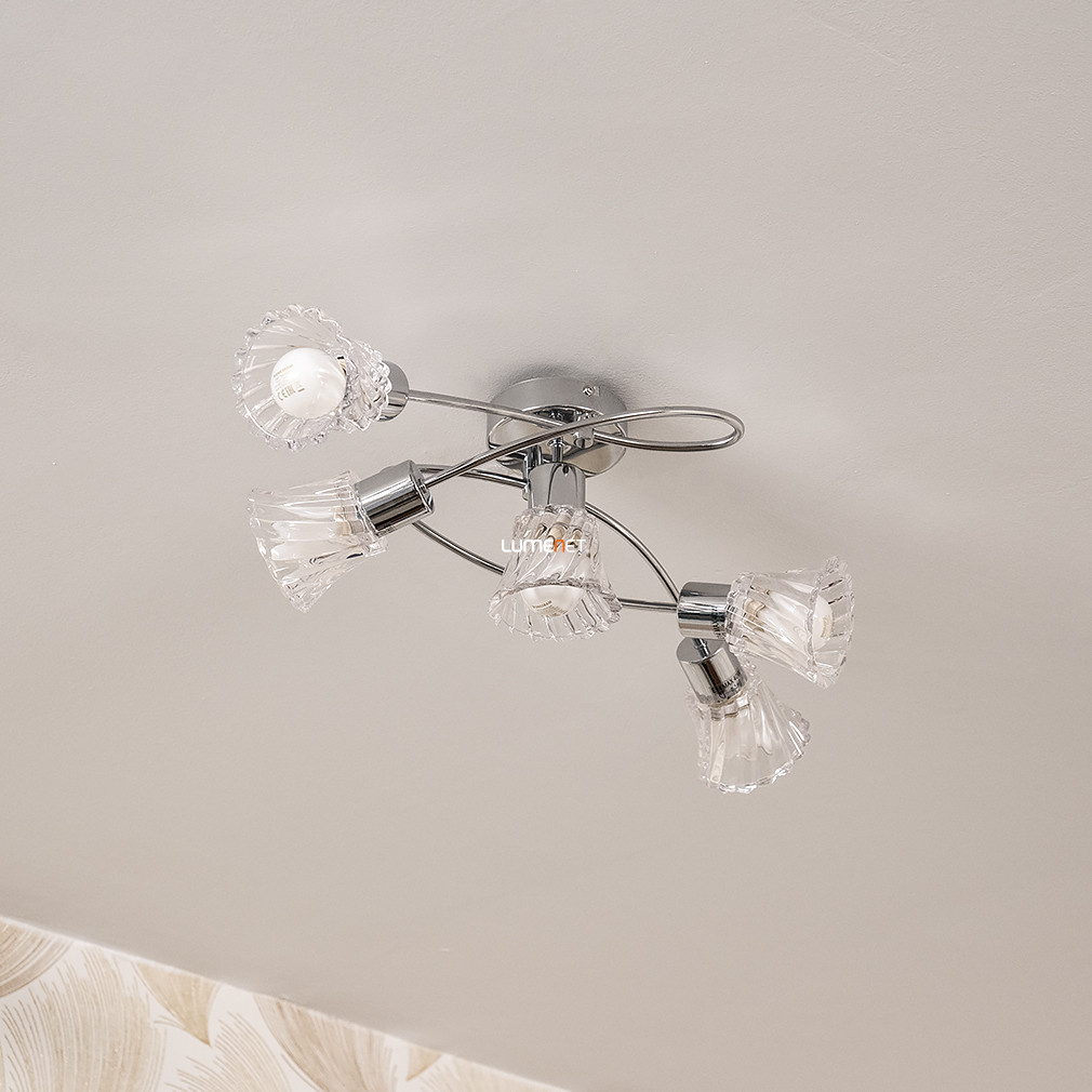 Ez a mennyezeti lámpa öt foglalattal és elegáns króm-áttetsző dizájnnal bármelyik szobát stílusosan megvilágítja.