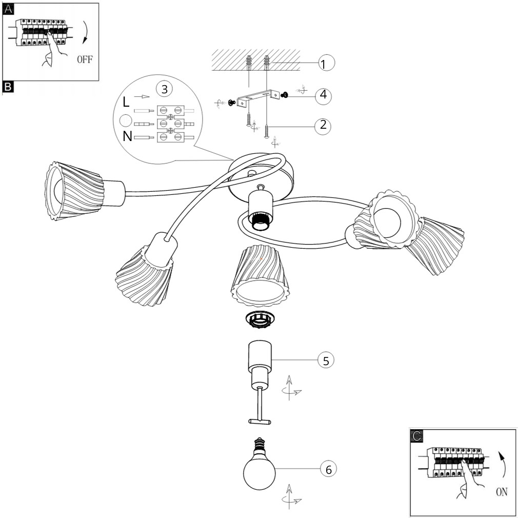 Mennyezeti lámpa 5 foglalattal - Hestia Rábalux 5304