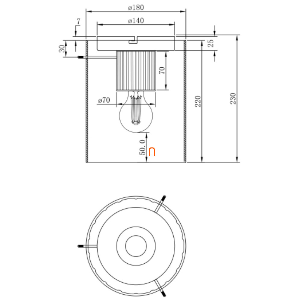 Lámpatest foglalat: 1xE27