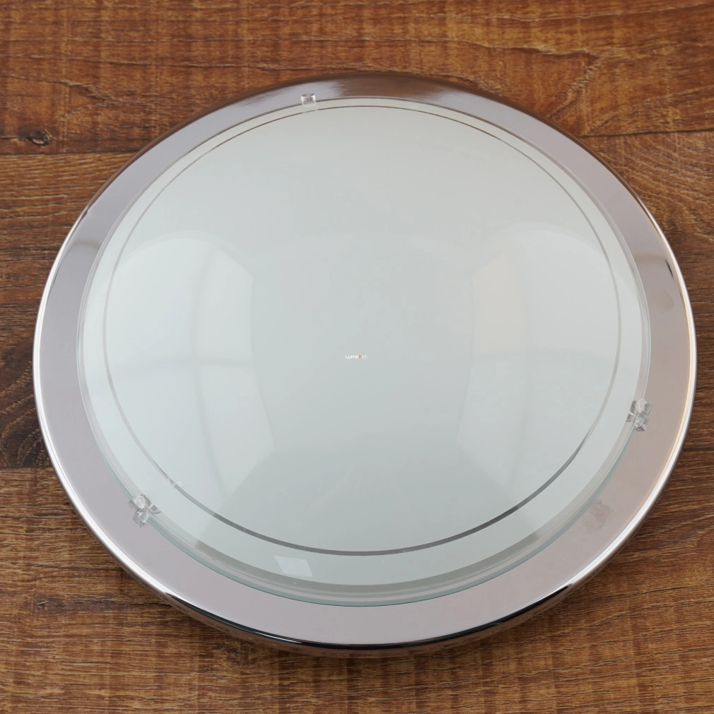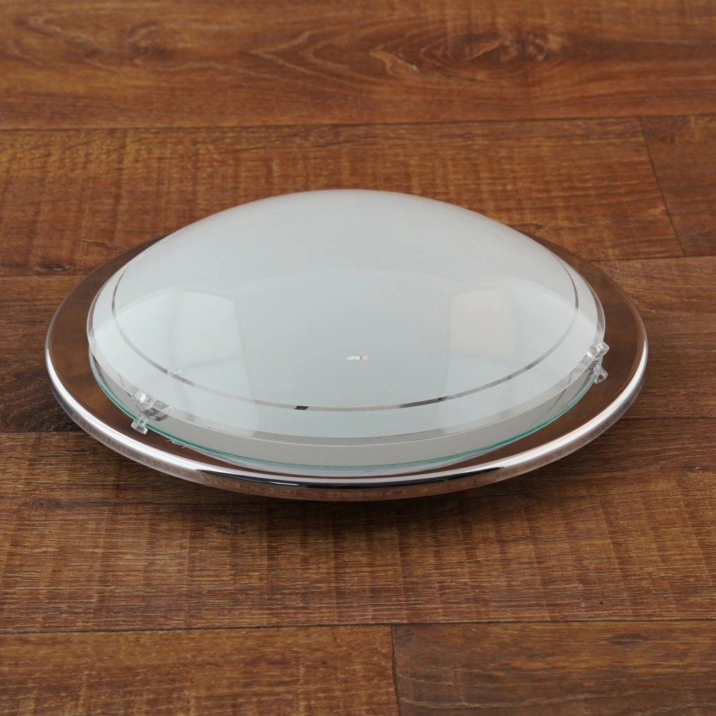 A Planet Eglo 83155 mennyezeti lámpa modern stílusával és letisztult formavilágával ideális választás beltéri lakásvilágítási megoldásokhoz. A lámpatest fehér-krómszínű, üveg és króm anyagok kombinációjából készült, átmérője 290 mm, magassága 85 mm. Egy darab E27 foglalattal rendelkezik, amelybe cserélhető fényforrás illeszthető, azonban a fényforrás nem tartozék. A lámpa nem szabályozható, színhőmérséklete, teljesítménye és fényszíne a behelyezett izzótól függ. A termék IP20 védettséggel rendelkezik, így kizárólag beltéri használatra alkalmas. A csomagolás méretei: 29 cm hosszú, 29 cm magas és 9 cm széles. A termék tömege 0,83 kg, gyártója az EGLO.