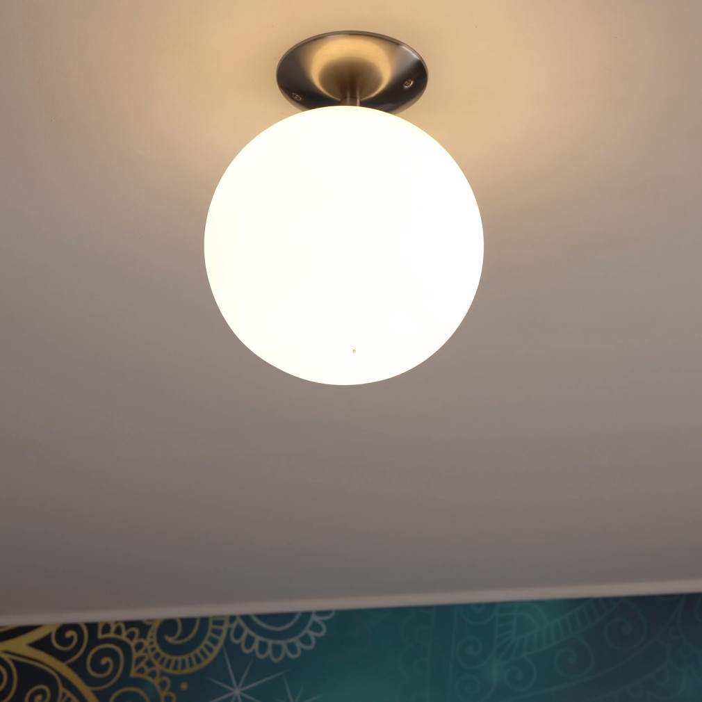 A Rondo Eglo 91589 mennyezeti lámpa modern stílusával és fehér színével letisztult megjelenést biztosít bármely lakótérben. A lámpatest üvegből és nikkelből készült, amely tartósságot és esztétikus felületet eredményez. Egy darab E27-es foglalattal rendelkezik, amely cserélhető fényforrás használatát teszi lehetővé, így a fényáram, fényszín és teljesítmény a választott izzótól függően alakítható. A lámpatest átmérője 250 mm, magassága 315 mm, tömege 1,55 kg. Nem szabályozható, védettségi szintje IP20, ezért beltéri használatra ajánlott. A termék a fényforrást nem tartalmazza, azt külön szükséges beszerezni. A csomagolás méretei: 28x28x37 cm. A gyártó az EGLO.