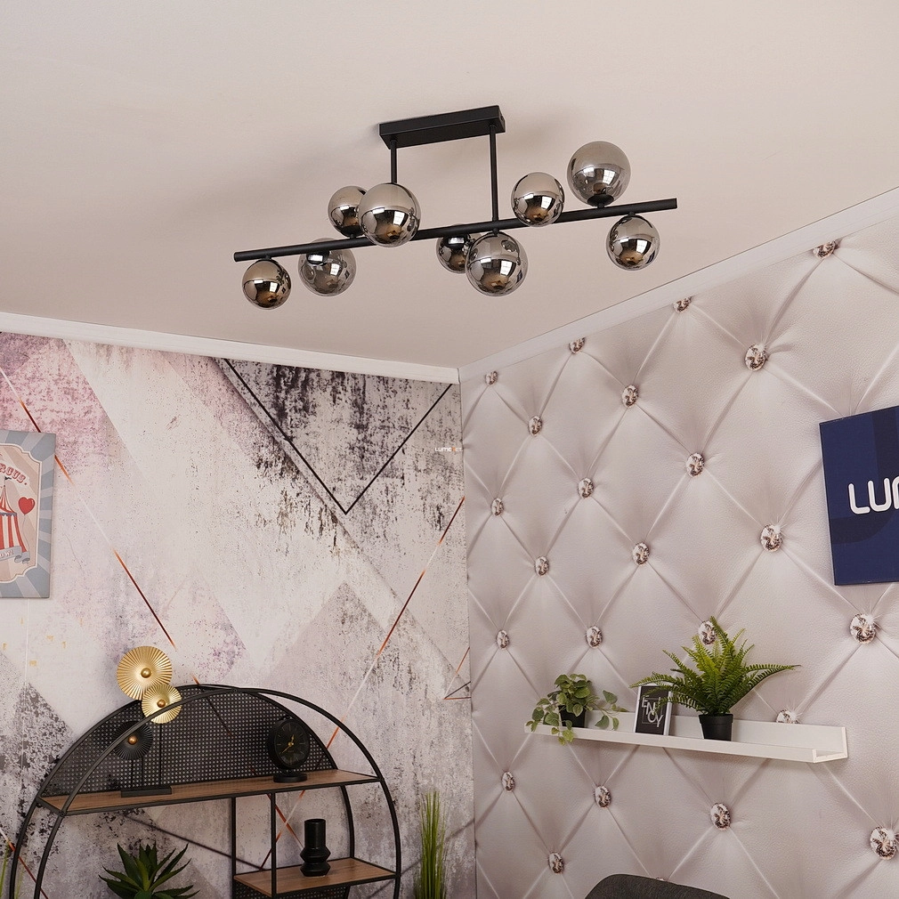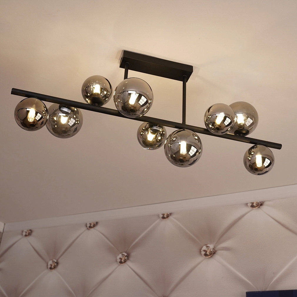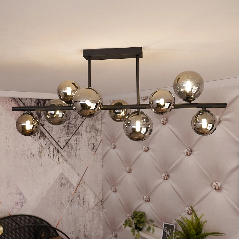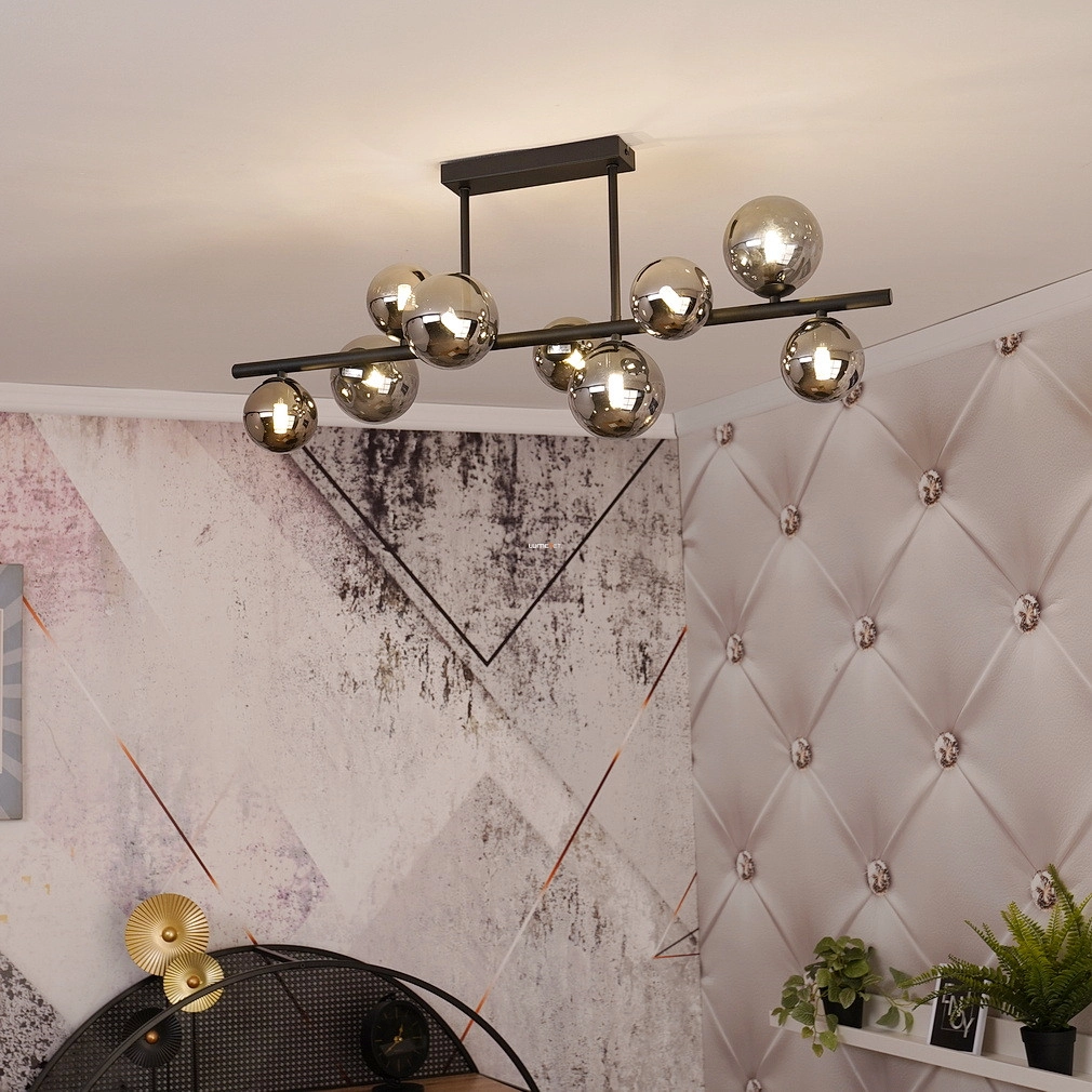 Mennyezeti lámpa, fekete-füstszínű, kilenc fényforrással - Riha Globo 56133-9D