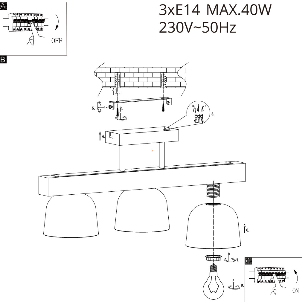 A lámpához szükséges még 3 darab E14 LED fényforrás , melyet ide kattintva találsz meg!