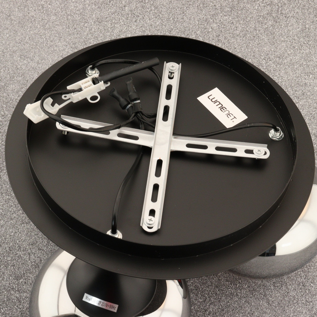 A mennyezeti lámpa füstszínű üveggömb búrákkal egyedi és modern megjelenést biztosít otthonodnak. Az üveg és fém kombinációja nemcsak esztétikus, hanem tartós is, így hosszú távon élvezheted a lámpa nyújtotta fényeket. A lámpa három E27 foglalattal rendelkezik, ami lehetővé teszi, hogy különböző fényforrásokat használj, így a fényerőt és a színhőmérsékletet is a saját igényeidhez igazíthatod. A lámpa átmérője 450 mm, magassága pedig 255 mm, ami ideális méretet biztosít a legtöbb helyiségbe. A matt fekete és füstszínű kombináció elegáns és kifinomult megjelenést kölcsönöz, amely könnyedén illeszkedik bármilyen belső térbe. A lámpa nem tartalmaz fényforrást, így szabadon választhatsz a különböző lehetőségek közül, hogy a legmegfelelőbb hangulatot teremtsd meg otthonodban. A lámpa felszerelése egyszerű, így gyorsan és könnyedén élvezheted a megújult világítást. A termék különlegessége, hogy a füstszínű üveggömbök sejtelmes fényt biztosítanak, amely különleges atmoszférát teremt a helyiségben.