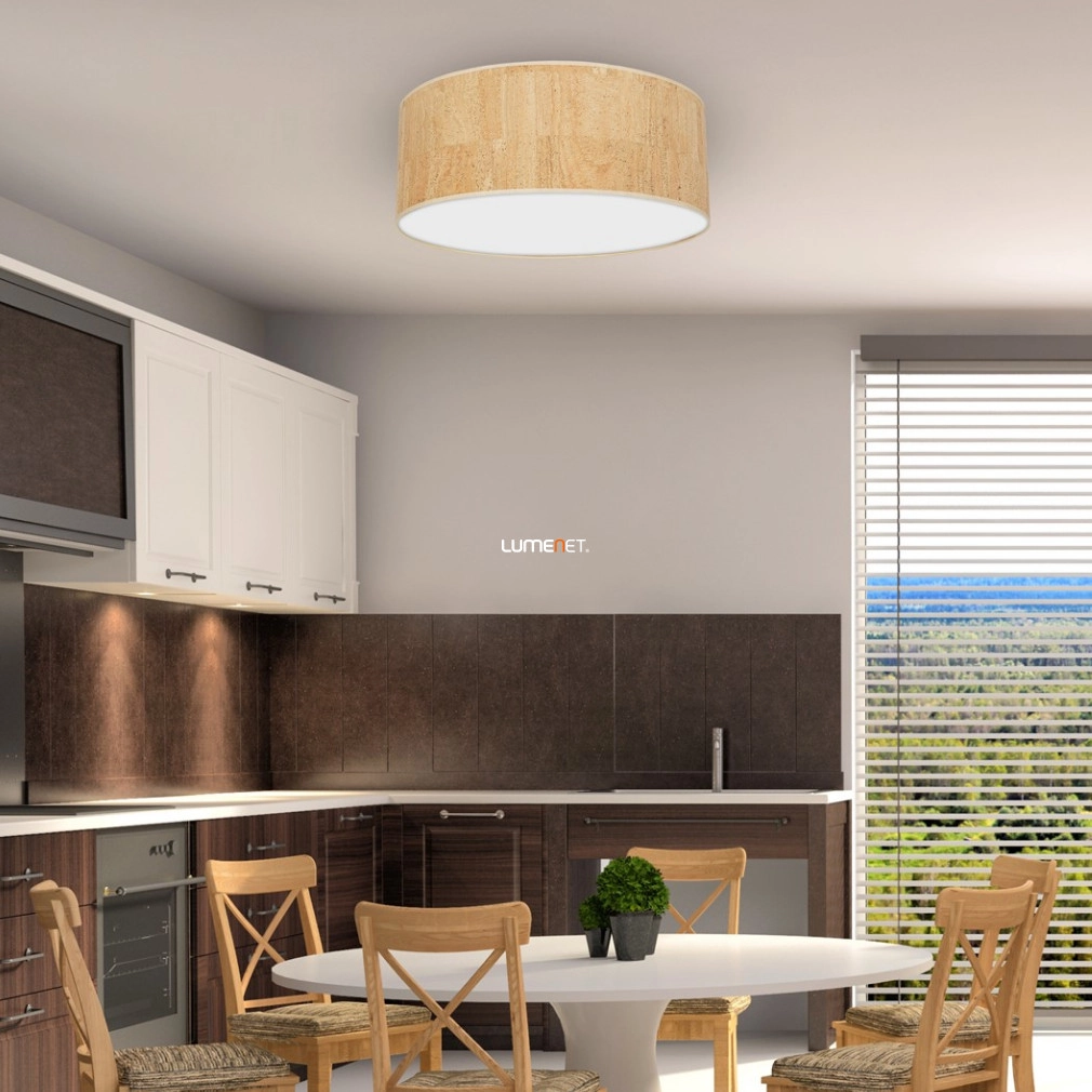 A Cork Milagro MLP7521 mennyezeti lámpa három E27 foglalattal rendelkezik, amelyek cserélhető fényforrások használatát teszik lehetővé, így a fényáram, a fényszín, a teljesítmény és a színhőmérséklet szabadon választható. A lámpatest átmérője 50 cm, magassága 13 cm, ezáltal alkalmas nagyobb helyiségek megvilágítására is. A termék IP20 védettséggel rendelkezik, így beltéri használatra ajánlott. A lámpa anyaga fém és fa, színe fa-fehér kombináció, amely modern és természetes megjelenést kölcsönöz a helyiségnek. A csomag nem tartalmaz fényforrást. A termék súlya 2,31 kg, logisztikai kódja MLP7521, gyártója a Milagro. A csomagolás méretei: 52 cm szélesség, 52 cm hosszúság, 15 cm magasság.