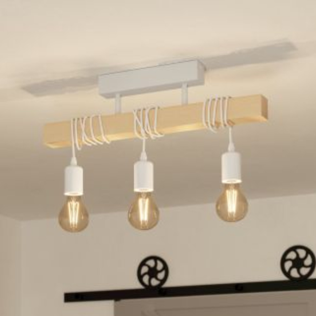 Mennyezeti lámpa három foglalattal, fehér-fa színű - Townshend Eglo 44082