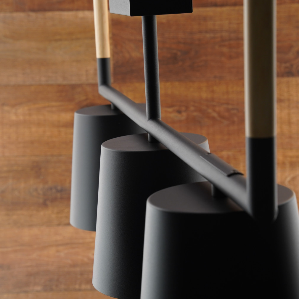 Ez a mennyezeti lámpa elegáns fekete-barna-bézs színkombinációjával és három foglalatával tökéletes választás bármely modern otthonba.
