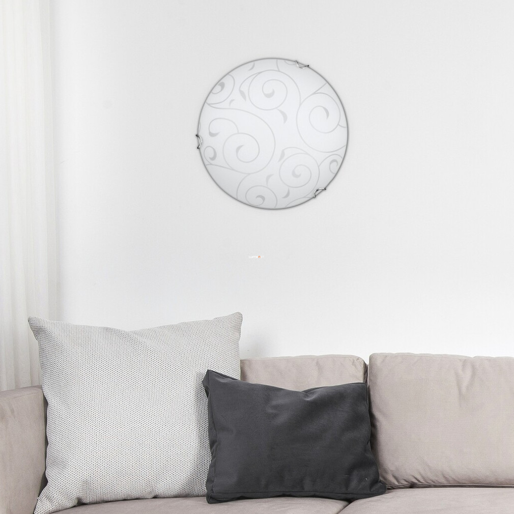 A Harmonylux Rábalux 3852 mennyezeti lámpa 30 cm átmérővel, króm és fehér színben, inda mintával díszített üveg burával rendelkezik. A lámpatest egy darab E27 foglalattal szerelt, amelybe cserélhető fényforrás helyezhető el. A termék fém és üveg anyagok felhasználásával készül, IP20 védettségi besorolással. A lámpa 230 V névleges feszültségen üzemeltethető, a csomag fényforrást nem tartalmaz. A termék tömege 0,68 kg, csomagolási méretei 31x31x8 cm. A Harmonylux Rábalux 3852 mennyezeti lámpa ideális általános lakásvilágítási feladatokra, modern stílusú enteriőrökbe.