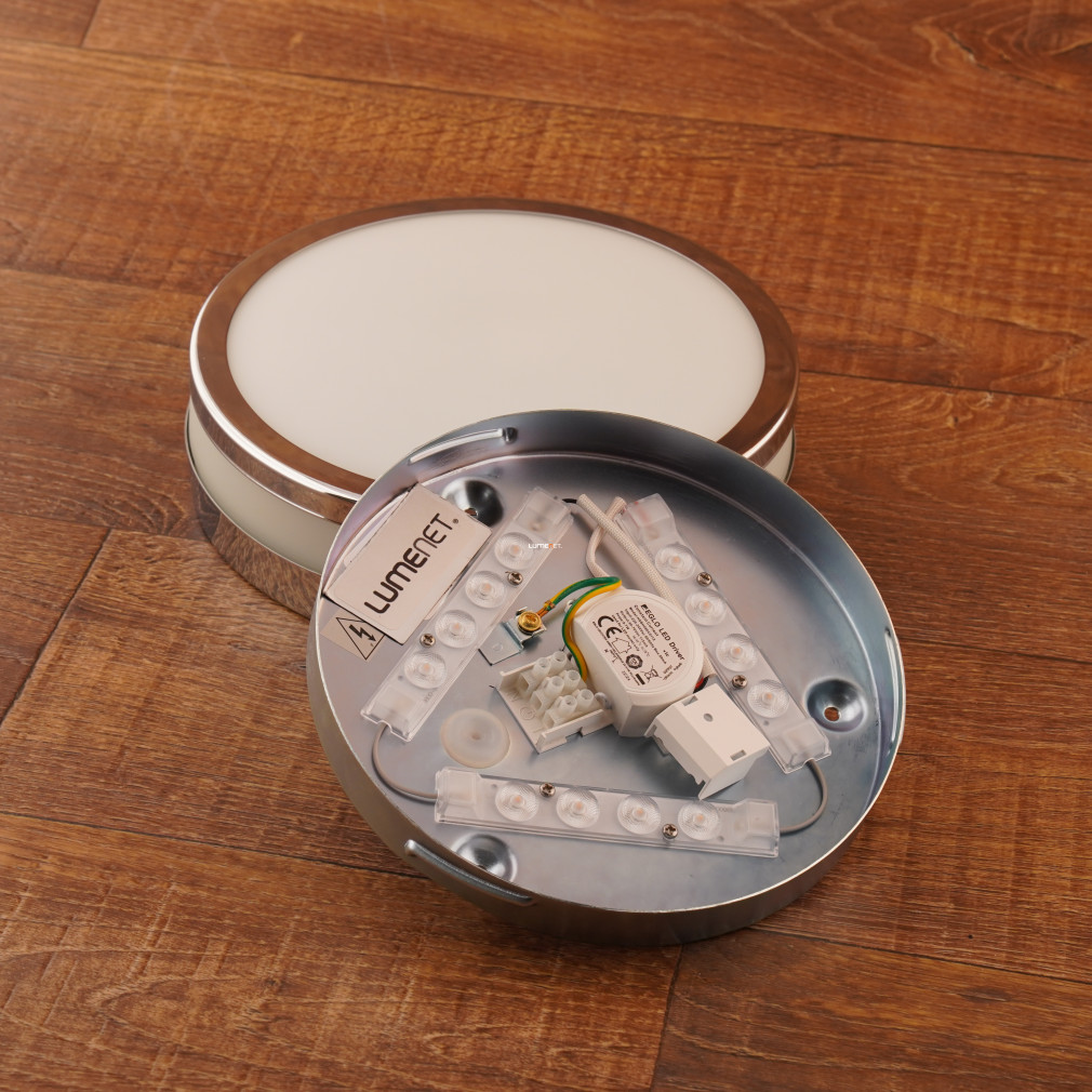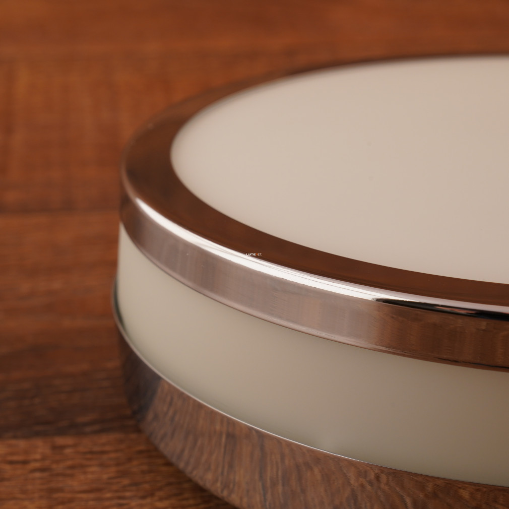 A Palermo Eglo 94998 mennyezeti LED lámpa 11 wattos teljesítménnyel és 1110 lumen fényárammal biztosítja a hatékony megvilágítást lakóterekben. A beépített LED modul melegfehér, 3000 Kelvin színhőmérsékletű fényt bocsát ki, amely kellemes atmoszférát teremt. A lámpatest átmérője 225 mm, anyaga acél és üveg, színe fehér-ezüst, amely jól illeszkedik a modern enteriőrökhöz. Az IP44-es védettségi szintnek köszönhetően fokozottan ellenáll a fröccsenő víznek, így fürdőszobai használatra is alkalmas. A termék átlagos élettartama 25 000 óra, nem szabályozható, a fényforrást tartalmazza. A csomagolás mérete 24 x 24 x 9 cm, tömege 2,04 kg.