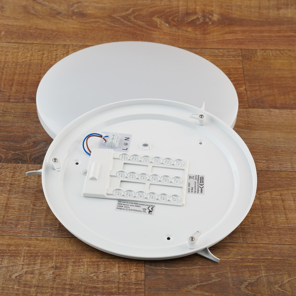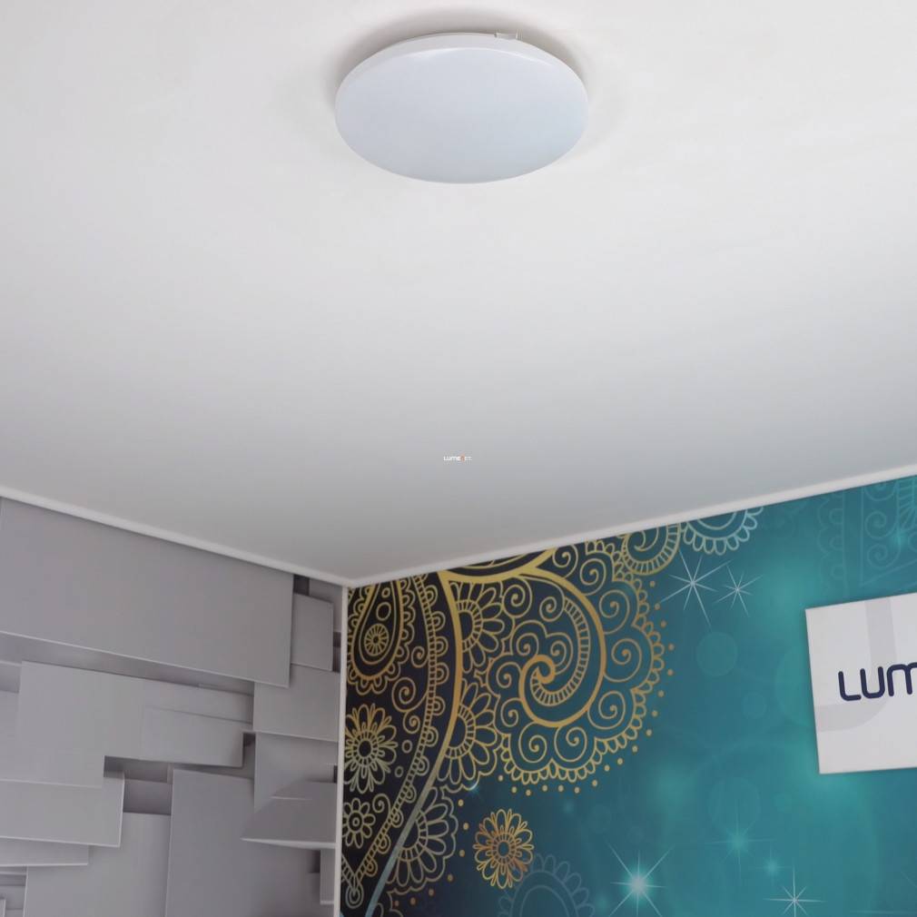 A Frania Eglo 33381 mennyezeti LED lámpa 14,6 watt teljesítménnyel és 1600 lumen fényárammal biztosítja a hidegfehér, 4000 K színhőmérsékletű világítást. A lámpatest fehér színű, acél és műanyag alapanyagokból készült, funkcionális stílusban tervezve. A beépített LED modul nem szabályozható, IP20 védettséggel rendelkezik, így beltéri használatra alkalmas. A lámpa átmérője 330 mm, magassága 70 mm, súlya 0,66 kg. A termék csomagolási méretei: 33 cm hosszúság, 33 cm magasság és 7 cm szélesség. A Frania Eglo 33381 egyenletes fényeloszlást biztosít, energiahatékony működés mellett. A LED fényforrás a lámpatest részét képezi, külön izzó beszerzése nem szükséges.
