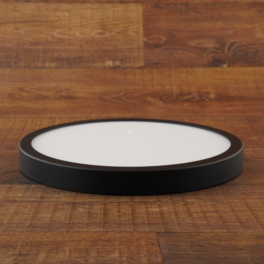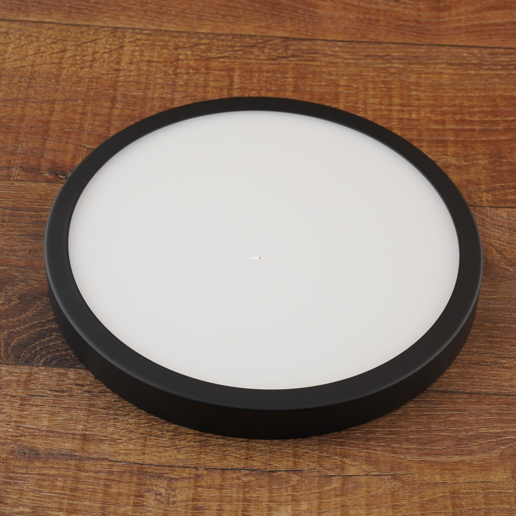 A Fueva Eglo 99224 mennyezeti LED lámpa modern stílusú világítási megoldás, amely 20 W teljesítményű, beépített LED modullal rendelkezik. A lámpatest 2400 lumen fényáramot biztosít, melegfehér (3000 K) színhőmérséklettel, így kellemes, otthonos hangulatot teremt. Az acél és műanyag anyaghasználat fekete-fehér színkombinációval elegáns megjelenést kölcsönöz a terméknek. A lámpa átmérője 285 mm, magassága 28 mm, IP20 védettségi besorolása beltéri használatra teszi alkalmassá. A termék nem szabályozható, a fényforrás nem cserélhető, mivel integrált LED modullal működik. A csomagolás mérete 29x29x3 cm, a termék tömege 0,88 kg.