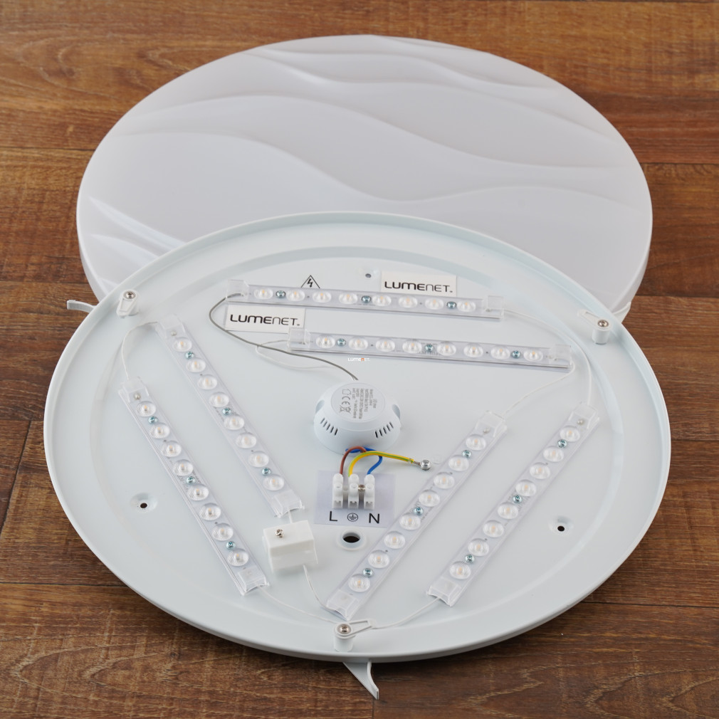 A Benariba Eglo 99344 mennyezeti LED lámpa 22 W teljesítményű, integrált LED modullal szerelt világítótest, amely 2500 lumen fényáram leadására képes. A lámpa melegfehér, 3000 K színhőmérsékletű fényt biztosít, amely ideális otthoni környezetekben. Modern stílusú kialakítása acél és műanyag anyaghasználattal párosul, fehér színű felülettel. A lámpatest átmérője 440 mm, tömege 1,43 kg. A termék IP20 védettségi szinttel rendelkezik, beltéri használatra alkalmas. A LED modul nem cserélhető, a lámpa nem szabályozható. A csomagolás méretei: 47 cm hosszú, 46 cm magas és 8 cm széles. A gyártó az EGLO.