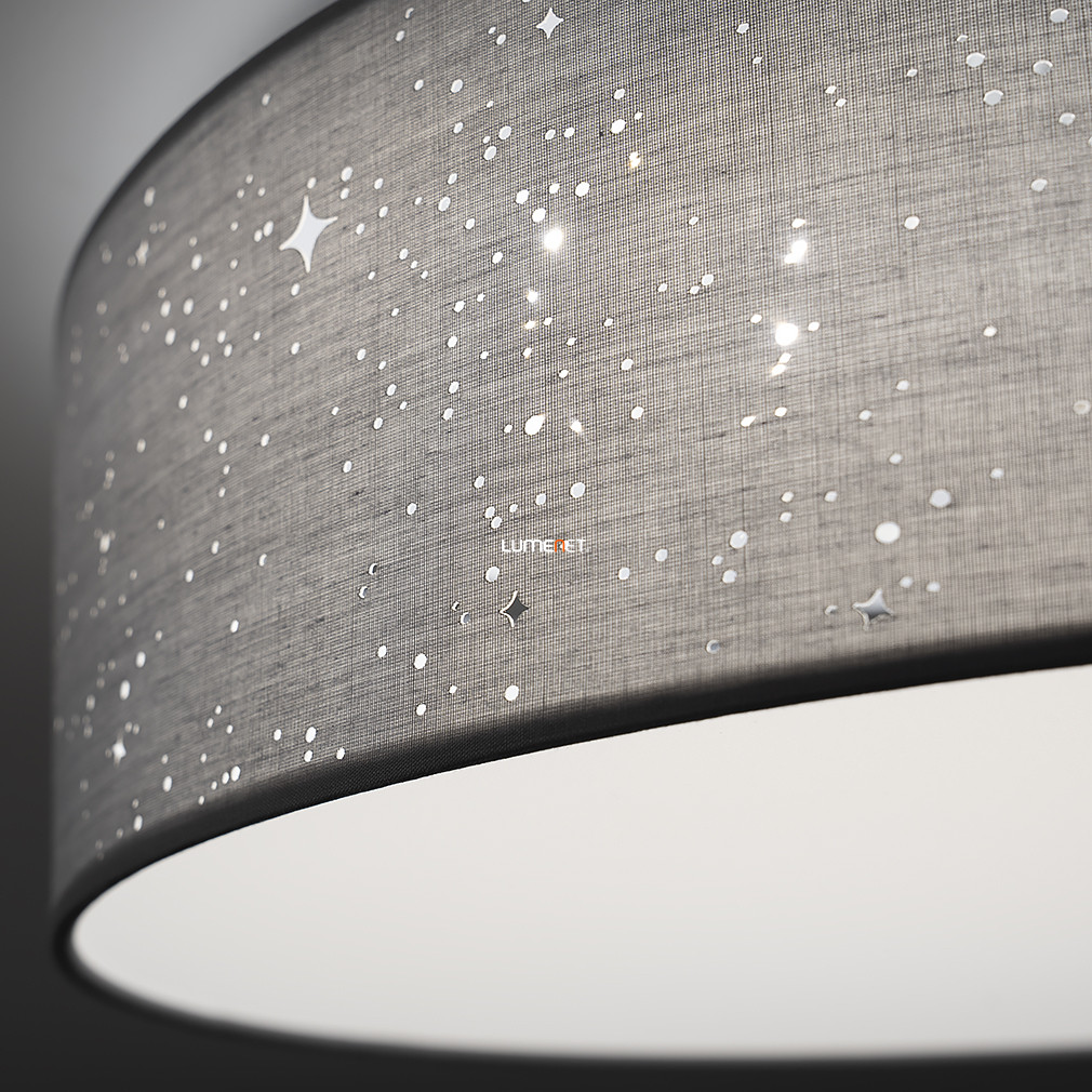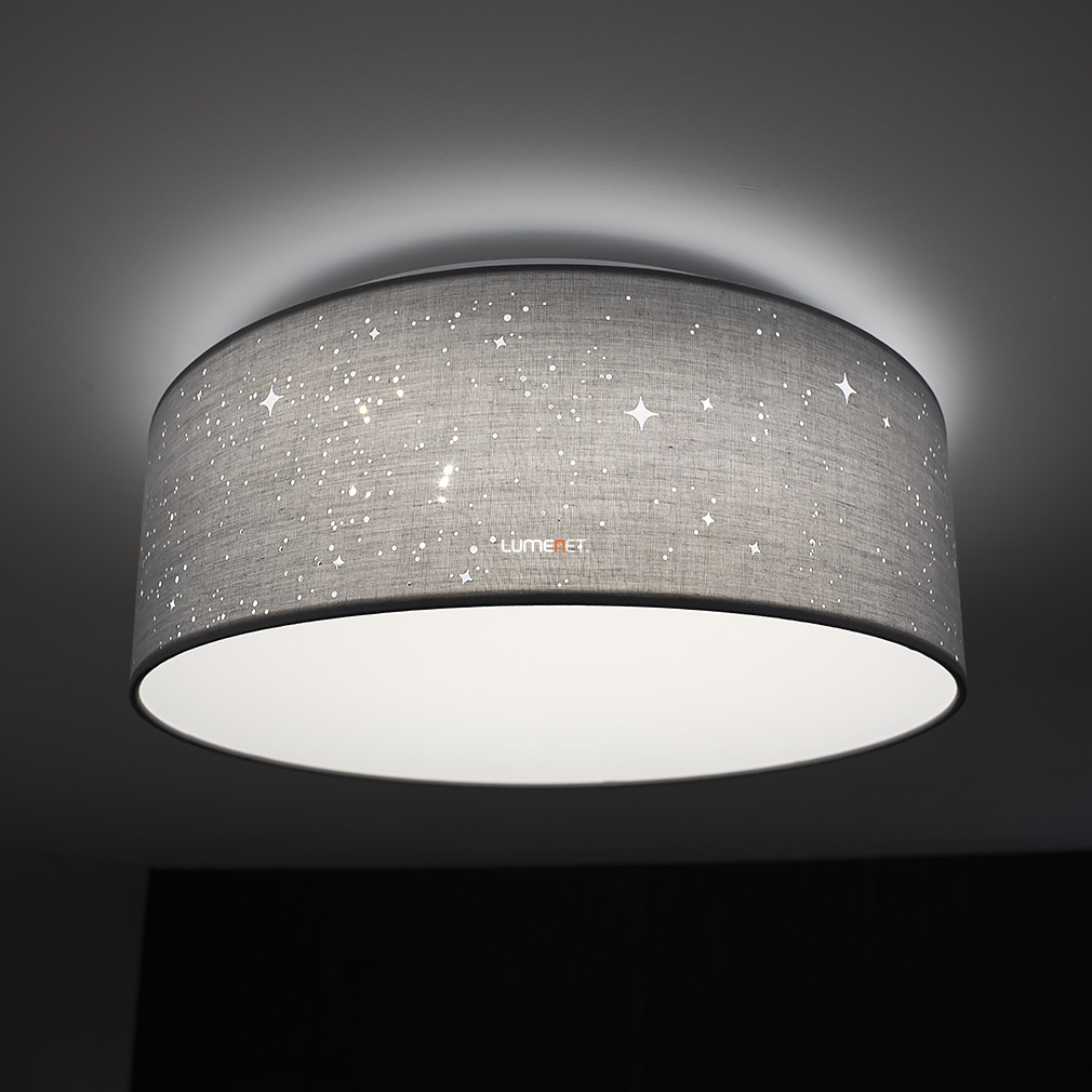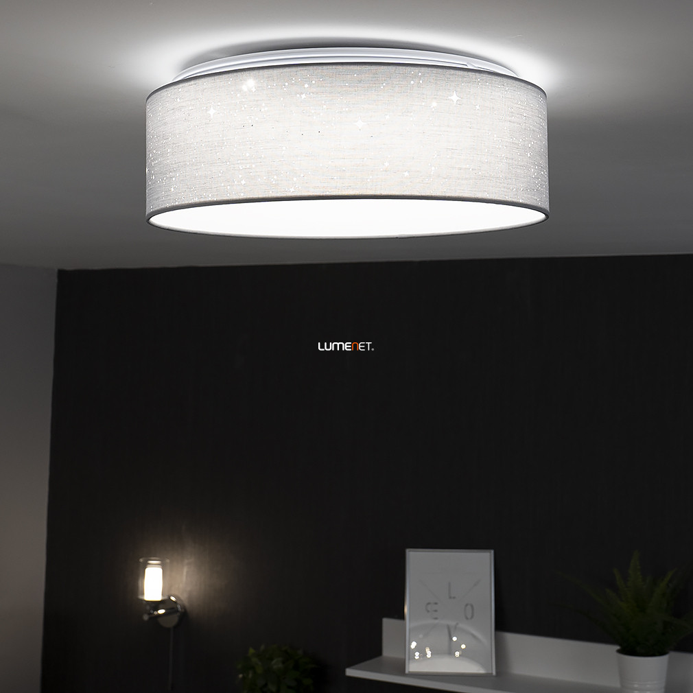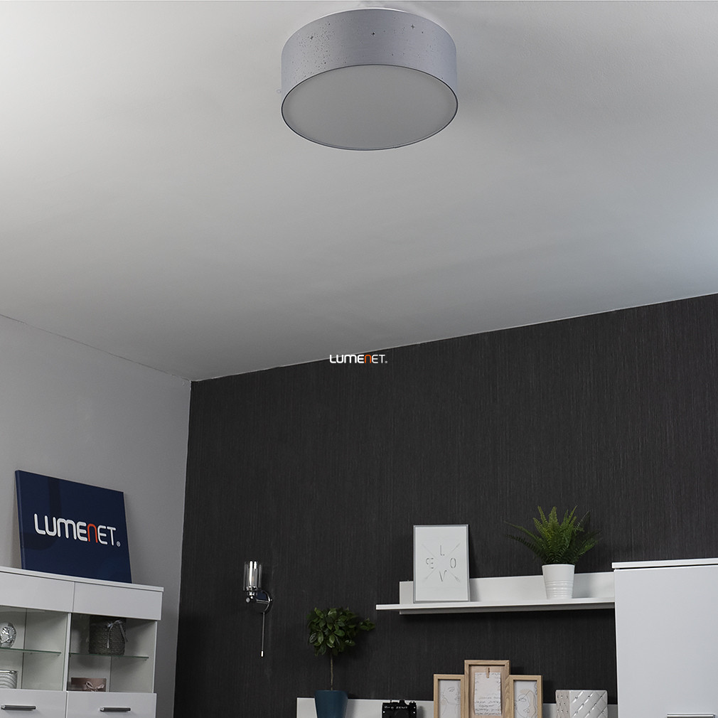 Ez a mennyezeti LED lámpa melegfehér fényével és elegáns szürke textil borításával tökéletes választás bármely modern otthonba.