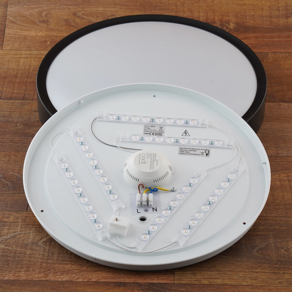 A Musurita Eglo 98604 mennyezeti LED lámpa modern kialakítással és 36 W teljesítményű integrált LED modullal rendelkezik, amely 3600 lumen fényáramot biztosít melegfehér (3000 K) színhőmérsékleten. A lámpatest fekete-fehér színkombinációban készül, anyaga műanyag és acél, átmérője 440 mm, magassága 75 mm. A termék IP20-as védettséggel ellátott, így beltéri használatra alkalmas. A lámpa nem szabályozható, a fényforrást tartalmazza, és a modern stílusú lakásvilágítási megoldások közé tartozik. A termék tömege 1,91 kg, csomagolási méretei 49x49x8 cm. Gyártója az EGLO.