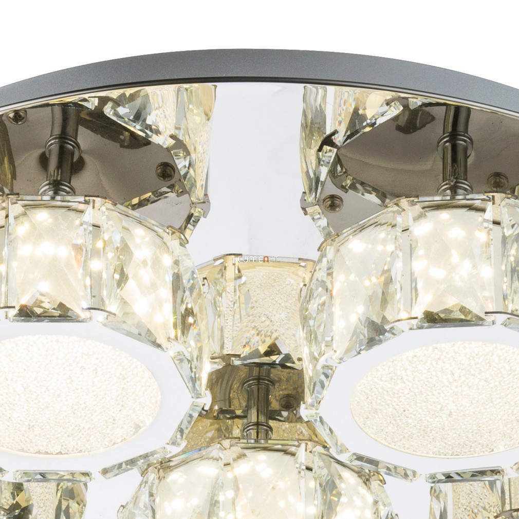 Az Amur Globo 49350D5 mennyezeti LED lámpa 64 wattos teljesítményével és 4580 lumen fényáramával hatékony világítást biztosít nagyobb helyiségekben is. A hidegfehér, 4000 kelvines fény színhőmérséklete modern hangulatot teremt, míg a LED modul technológia hosszú, 20 000 órás átlagos élettartamot kínál. A lámpatest króm és műanyag anyagok felhasználásával készült, K5 kristály díszítéssel, amely elegáns megjelenést kölcsönöz az ezüst és áttetsző színkombinációnak. A 500 mm átmérőjű és 110 mm magas mennyezeti lámpa IP20 védettséggel rendelkezik, így beltéri használatra alkalmas. A termék nem szabályozható, a fényforrást a beépített LED modul tartalmazza. A csomagolás méretei: 56x56x16 cm, a lámpa tömege 7,8 kg.