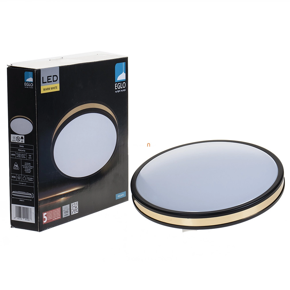 A Pescaito Eglo 99406 mennyezeti LED lámpa modern megjelenésű, arany színű szegéllyel és fekete-fehér színkombinációval készült, amely 28 cm átmérőjű és 6,5 cm magas. A lámpatest 11 wattos beépített LED modullal működik, amely 1100 lumen fényáramot biztosít melegfehér, 3000 Kelvin színhőmérséklettel. Az IP20-as védettség beltéri használatra teszi alkalmassá. Az acél és műanyag anyaghasználat tartósságot és könnyű karbantarthatóságot kínál. A lámpa nem szabályozható, a fényforrás beépített, így nincs szükség külön izzó vásárlására. A termék tömege 0,56 kg, csomagolási méretei 28x28x6 cm. A gyártó az EGLO.