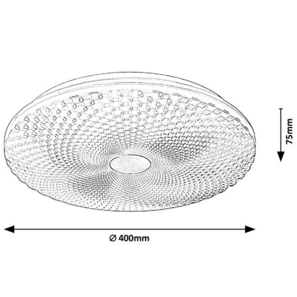 A Galeti-2 Rábalux 71184 mennyezeti LED lámpa modern, letisztult formavilággal és ezüst színű fémházzal készül. A 400 mm átmérőjű, 50 mm magas lámpatest beépített, 24 W teljesítményű LED modullal működik, amely 1900 lumen fényáramot és 4000 Kelvin színhőmérsékletű, hidegfehér fényt biztosít. A lámpa energiaosztálya G, névleges feszültsége 230 V, védettségi besorolása IP20. Átlagos élettartama 50 000 óra, így hosszú távú, megbízható világítási megoldást jelent beltéri helyiségekben. A csomagolás méretei: 44 cm szélesség, 44 cm hosszúság és 10 cm magasság. A lámpatest fényforrást tartalmaz, foglalata LED modul. A termék gyártója a Rábalux.