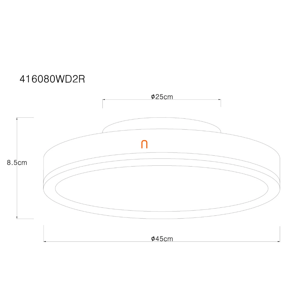 A Doro Globo 416080WD2R mennyezeti LED lámpa fa hatású kerettel modern megjelenésű, 450 mm átmérőjű, 85 mm magasságú világítótest. A lámpa integrált 12 W teljesítményű LED modullal rendelkezik, amely 1800 lumen fényáramot biztosít melegfehér, 3000 K színhőmérsékleten. A termék anyaga fém és műanyag, színe grafit és opál, IP20 védettségi szinttel. A lámpa 230 V névleges feszültségen működik, a fényforrás beépített LED modul. A csomagolás méretei: 49 cm hosszú, 49 cm magas, 9 cm széles, a termék tömege 2,85 kg. A lámpatestet a Globo gyártja, logisztikai kódja 416080WD2R.