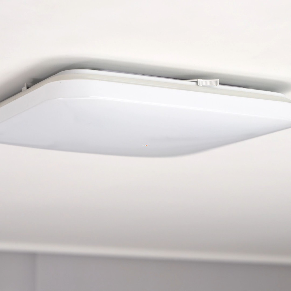 A Frania Eglo 97885 mennyezeti LED lámpa fürdőszobai használatra készült, modern stílusban. A lámpatest fehér színű, acél és műanyag anyagok kombinációjával biztosít tartósságot és letisztult megjelenést. A beépített, 17,3 wattos LED modul 1600 lumen fényáramot biztosít, melegfehér, 3000 K színhőmérséklettel, amely kellemes fényt ad a helyiségnek. A lámpa IP44 védettséggel rendelkezik, így ellenáll a fröccsenő víznek, ezért ideális fürdőszobai elhelyezéshez. A termék méretei 330 mm hosszúság és szélesség, valamint 70 mm magasság. A lámpa nem szabályozható, a fényforrás a termék része, így külön izzót nem igényel. A Frania Eglo 97885 mennyezeti LED lámpa megbízható világítási megoldást kínál fürdőszobák számára, az EGLO gyártásában.