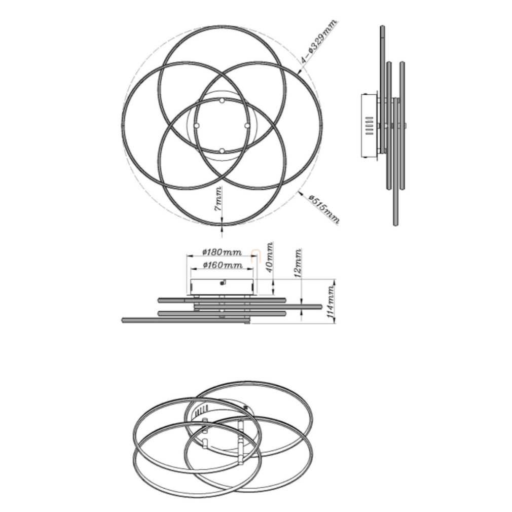 Mennyezeti LED lámpa, 4 gyűrűs, nikkel - Kombos Globo 67355-55N