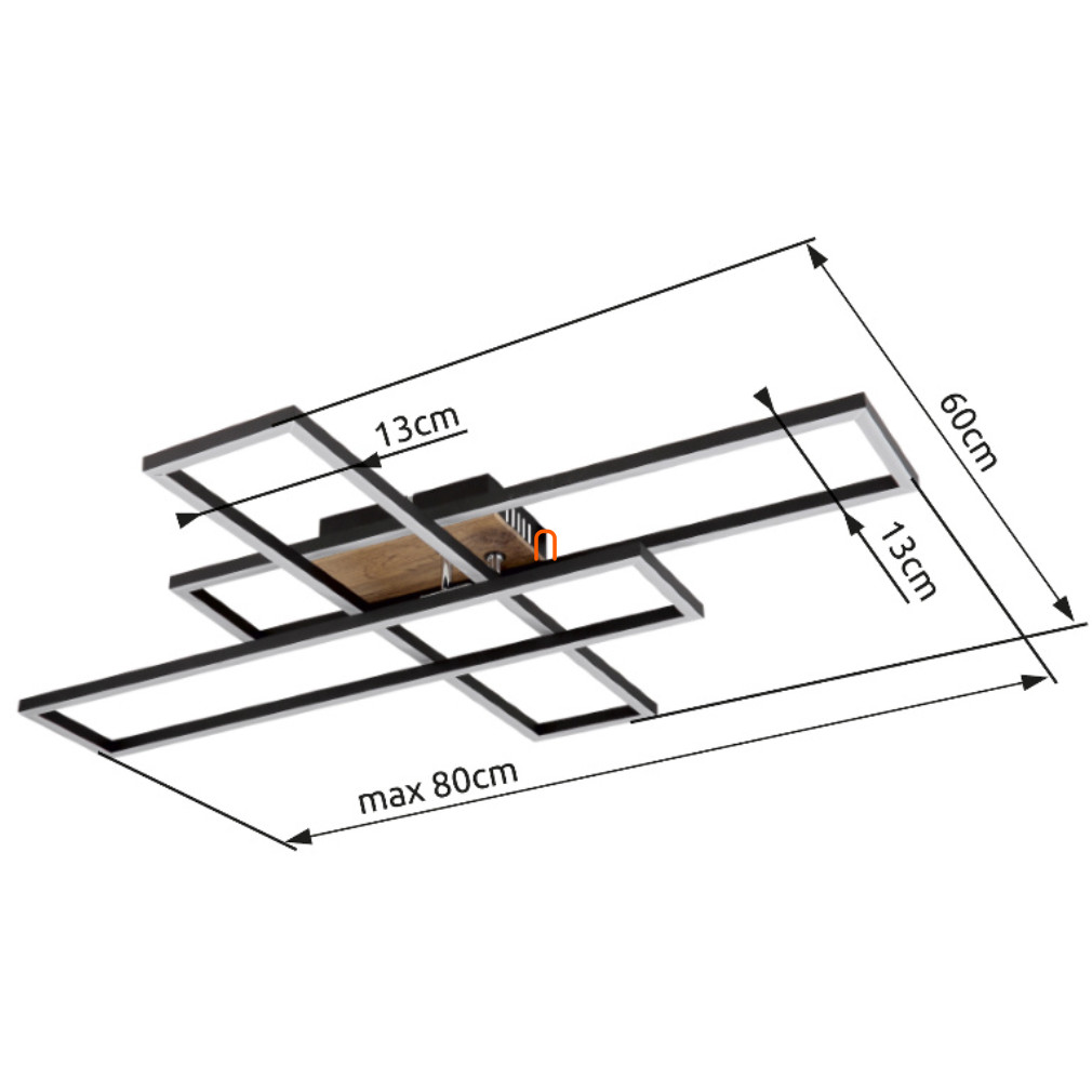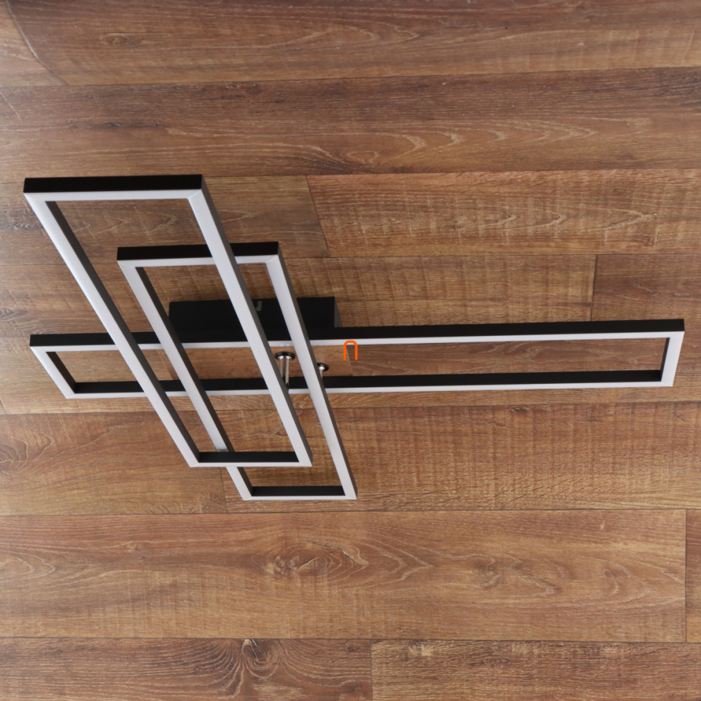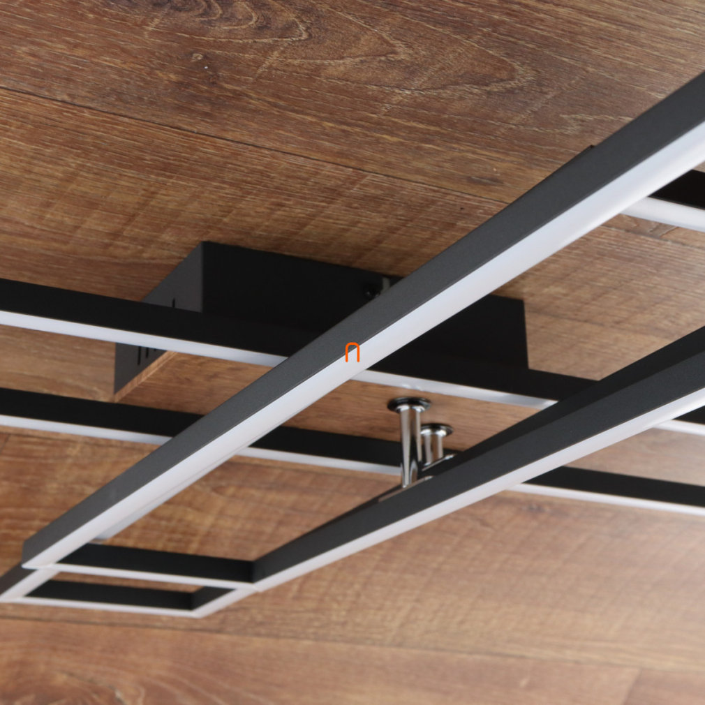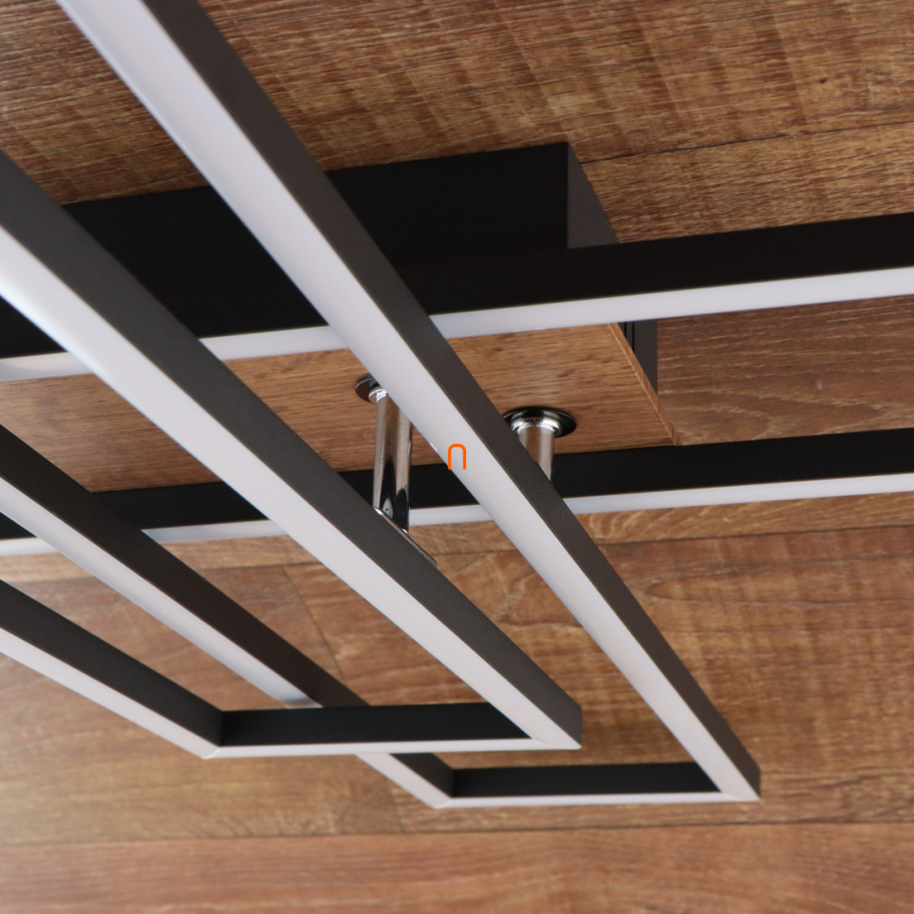 A Dakari Globo 67208-40 mennyezeti LED lámpa modern megjelenésével és matt fekete-natúr színkombinációjával esztétikus megoldást kínál lakásvilágításhoz. A lámpatest 40 wattos beépített LED modullal működik, amely 1650 lumen fényáramot biztosít melegfehér, 3000 kelvines színhőmérséklet mellett. A termék fém, alumínium és műanyag anyagok felhasználásával készült, így tartós szerkezetű. A lámpa 800 mm hosszú, 600 mm széles és 100 mm magas, IP20 védettségi szinttel rendelkezik, ami beltéri használatra teszi alkalmassá. A névleges feszültség 230 V, a fényforrás beépített LED modul, amely hosszú élettartamot és energiahatékonyságot kínál. A termék tömege 1,41 kg, logisztikai kódja 67208-40.