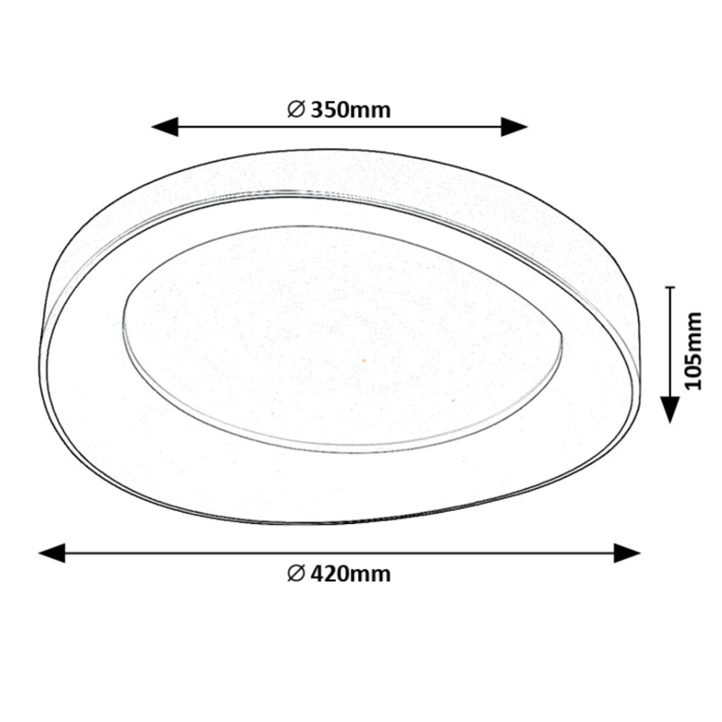 Az Iliana Rábalux 71055 mennyezeti LED lámpa 42 cm átmérővel és 105 mm magassággal rendelkezik, modern megjelenését az ezüst-fehér színű fém és műanyag anyaghasználat biztosítja. A beépített 38 W teljesítményű LED modul 2600 lumen fényáramot bocsát ki, melegfehér, 3000 K színhőmérséklettel, így kellemes, otthonos légkört teremt. A lámpa 230 V névleges feszültségen működik, energiaosztálya G. IP20 védettségi besorolása beltéri használatra teszi alkalmassá. Átlagos élettartama 20 000 óra, a fényforrás cseréjére nincs szükség, mivel a LED modul beépített. A termék tömege 1,7 kg, csomagolása 47x47x14 cm méretű. A Rábalux által gyártott lámpa logisztikai kódja 71055.