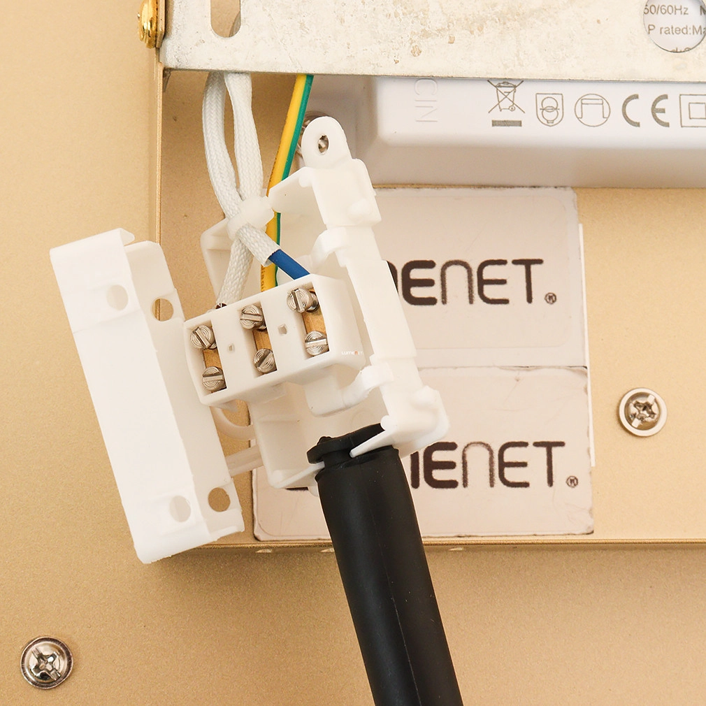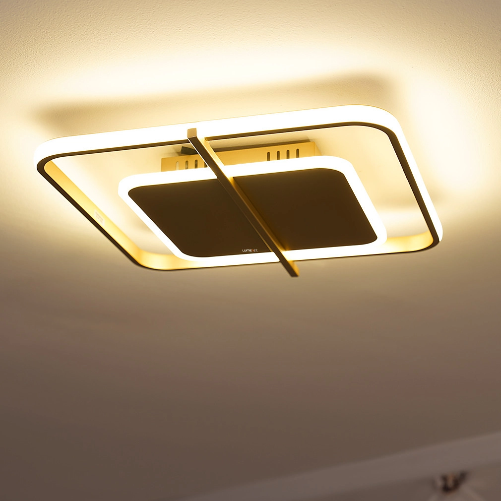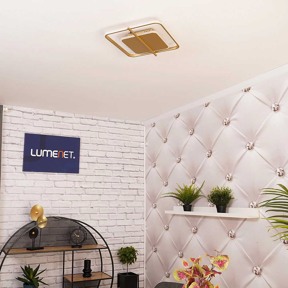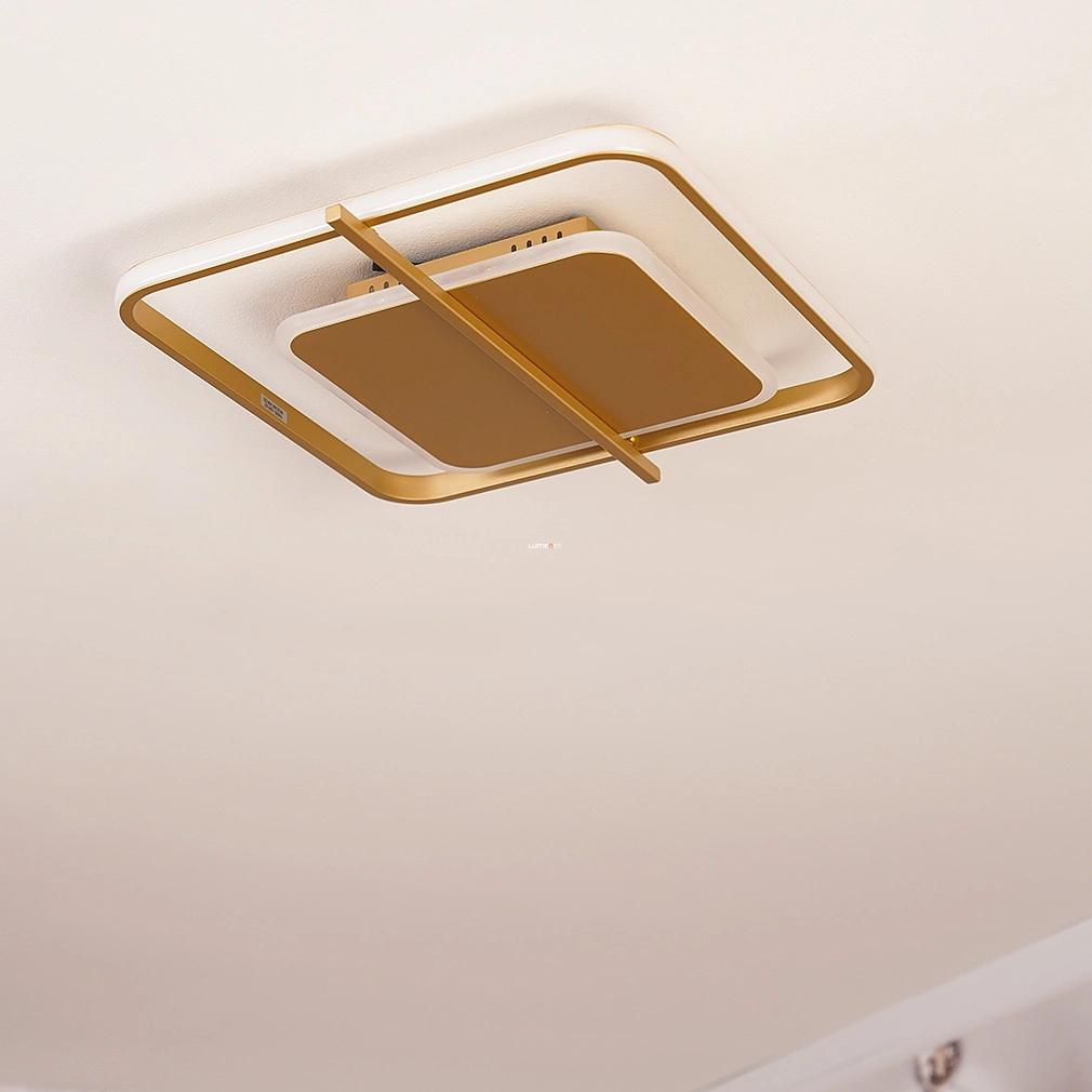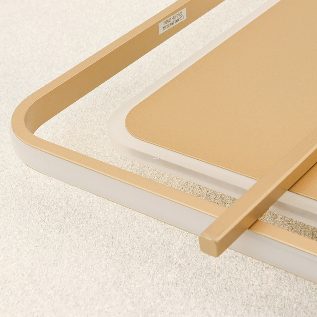 A Reball Globo 48553-36 mennyezeti LED lámpa modern stílusú kialakítással rendelkezik, amely ötvözi a műanyag és fém anyagokat arany színben. A lámpatest beépített 36 W teljesítményű LED modullal működik, amely 2650 lumen fényáramot biztosít melegfehér (3000 K) színhőmérsékleten. A termék IP20 védettséggel rendelkezik, így beltéri használatra alkalmas. A lámpa méretei: 400 mm hosszúság, 360 mm szélesség és 50 mm magasság, tömege 1,4 kg. A csomagolás 37 cm széles, 6 cm hosszú és 41 cm magas. A termék megfelel a lakásvilágítás korszerű követelményeinek, és a fényforrást tartalmazza.