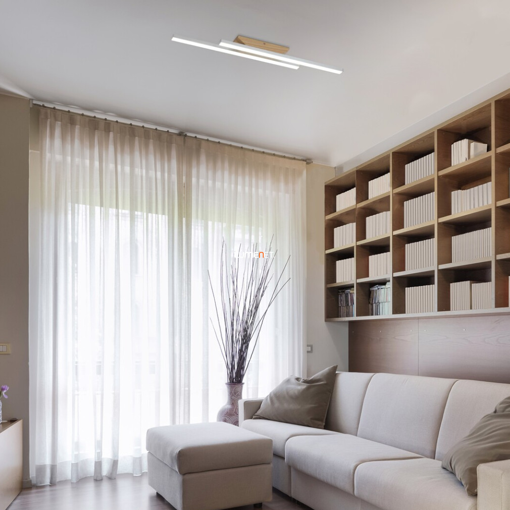A Tamur Rábalux 71084 mennyezeti LED lámpa nikkel színben modern megjelenést és hatékony világítást kínál lakóterek számára. A lámpatest 21 W teljesítményű, beépített LED modullal működik, amely 1900 lumen fényáramot biztosít, hidegfehér, 4000 K színhőmérsékleten. A termék IP20 védettségi besorolással rendelkezik, így beltéri használatra alkalmas. Anyaghasználata fém, fa és műanyag, színe fa és fehér kombinációja. A lámpa átlagos élettartama 30 000 óra, mérete 800 mm hosszúság és 55 mm magasság. A csomagolási méretek: 82 cm magasság, 9 cm szélesség, 6 cm hosszúság. A termék súlya 0,81 kg, gyártója a Rábalux.