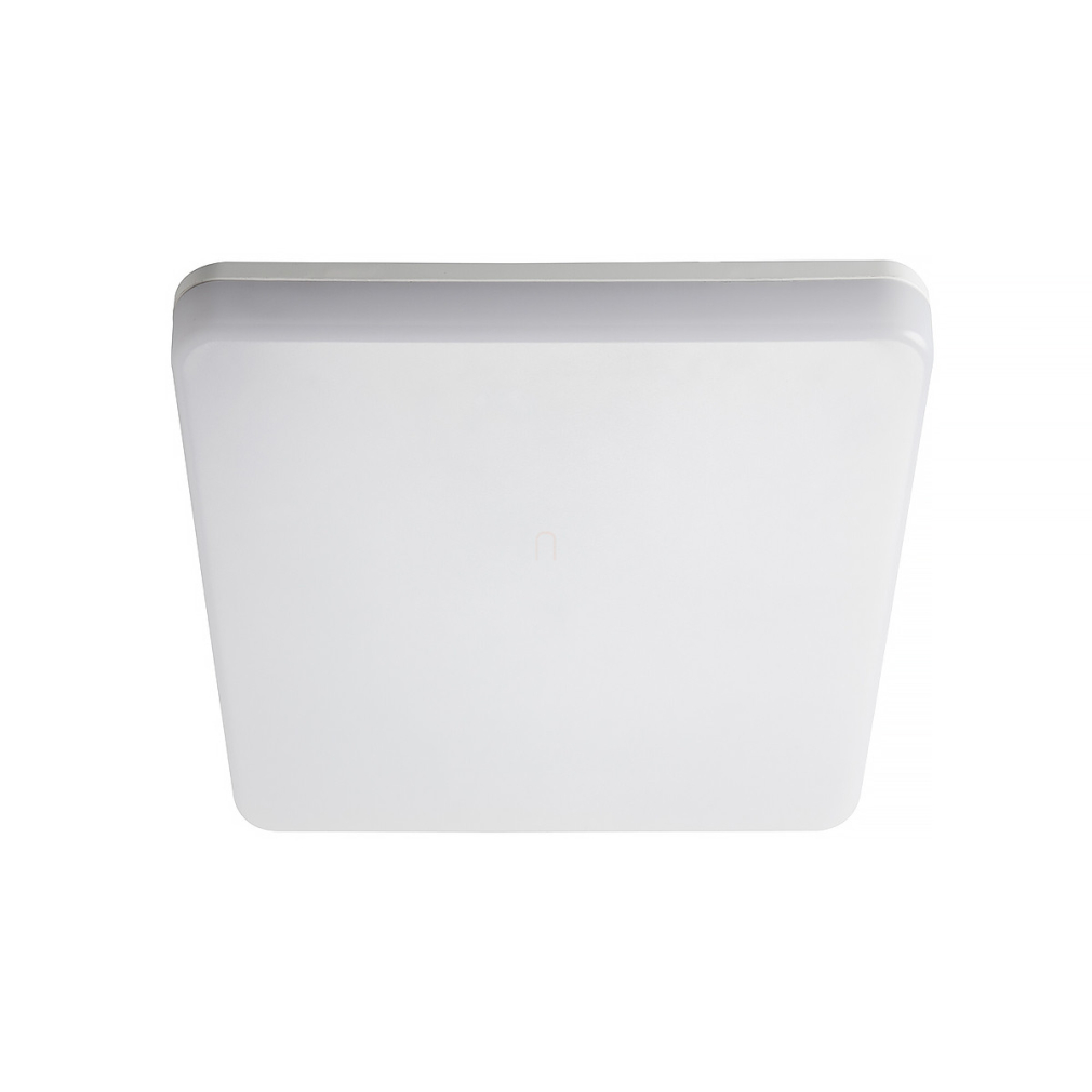 A Kanlux 26443 szögletes mennyezeti LED lámpa 1700 lumen fényárammal és 4000 K színhőmérséklettel hidegfehér megvilágítást biztosít kültéri használatra. A lámpatest 18 W teljesítményű LED modullal működik, amely beépített fényforrást tartalmaz. A termék IP54-es védettsége révén ellenáll a por és fröccsenő víz behatásainak, míg az IK08 ütésállósági besorolás fokozott mechanikai védelmet nyújt. A lámpa műanyag háza fehér színű, mérete 278x278x49 mm, tömege 1,07 kg. A fényhasznosítás 94 lm/W, az átlagos élettartam eléri a 20 000 órát. A termék a Kanlux gyártásában készült, logisztikai kódja 26443.