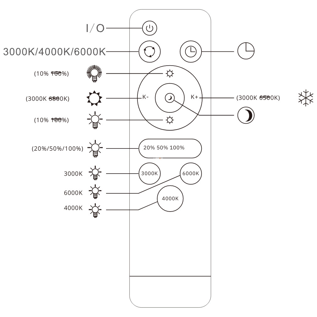 A lámpatesthez tartozó IR-távirányító minden olyan Primrose lámpát tud vezérelni, amire optikai rálátása van.
