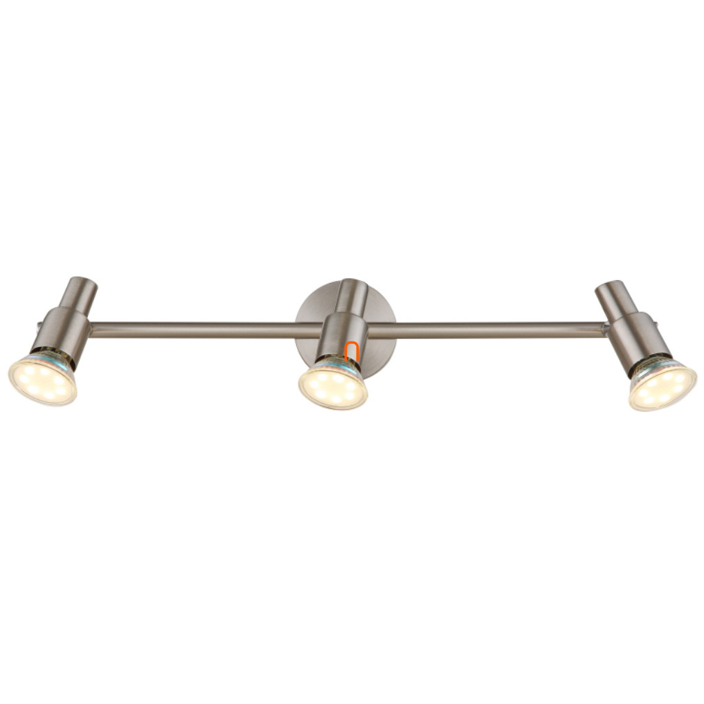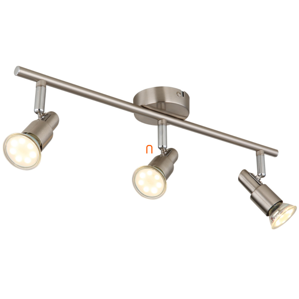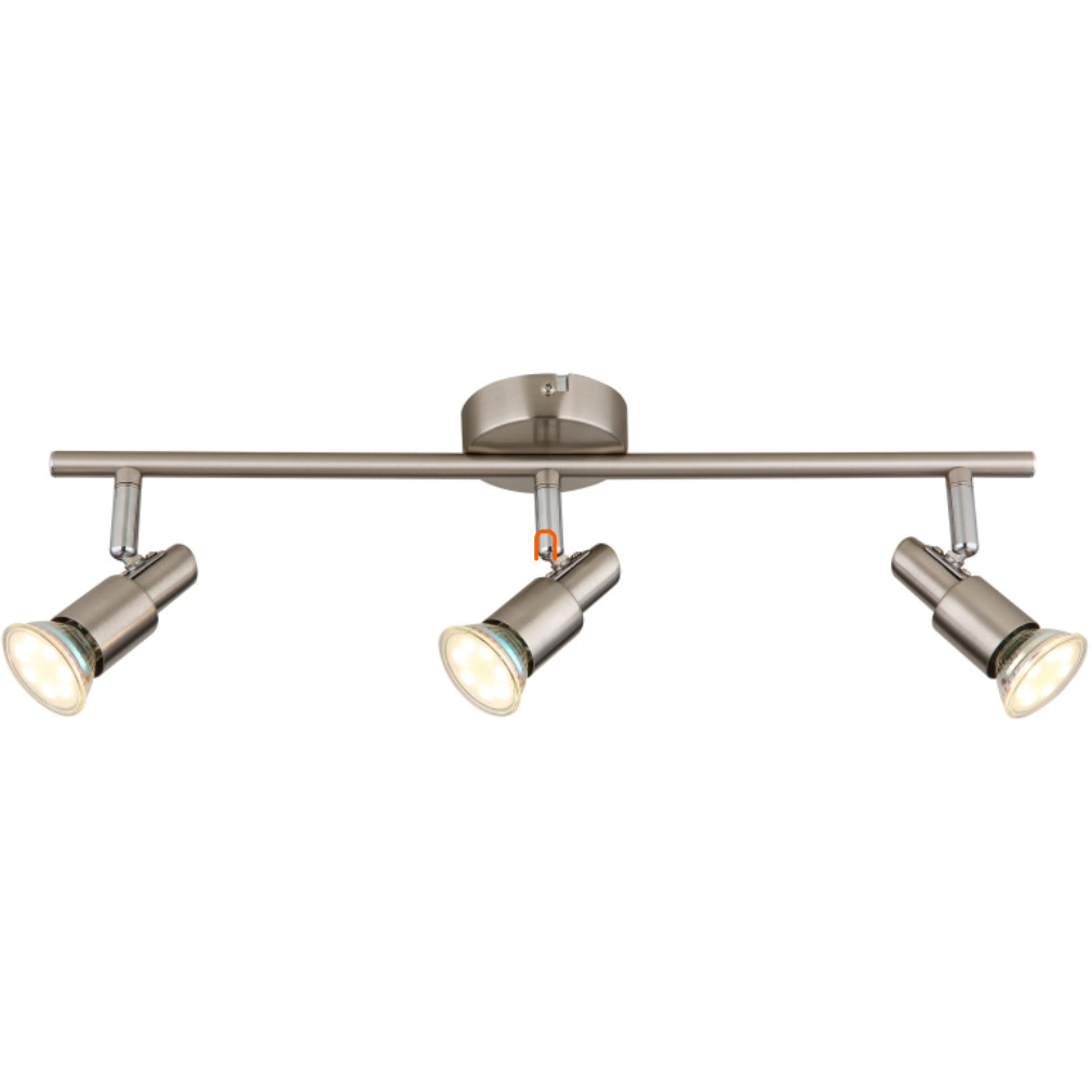 A Kinley Globo 57385-3 mennyezeti spot lámpa három GU10 foglalattal rendelkezik, így cserélhető fényforrásokkal működik, amelyek biztosítják a testreszabható fényáramot, színhőmérsékletet és fényszínt. A lámpatest nikkel és króm színű, fém anyagból készült, modern és tartós kivitelben. Névleges feszültsége 230 V, védettségi szintje IP20, így beltéri használatra alkalmas. A lámpa teljes hossza 470 mm, szélessége 80 mm, magassága 110 mm, tömege 0,6 kg. A csomag három darab fényforrást is tartalmaz, a termék logisztikai kódja 57385-3. A gyártó a Globo.