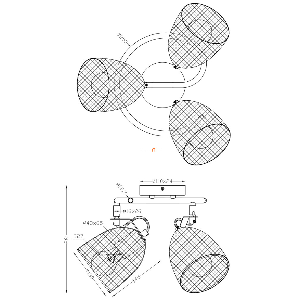 Lámpatest foglalat: 3xE27