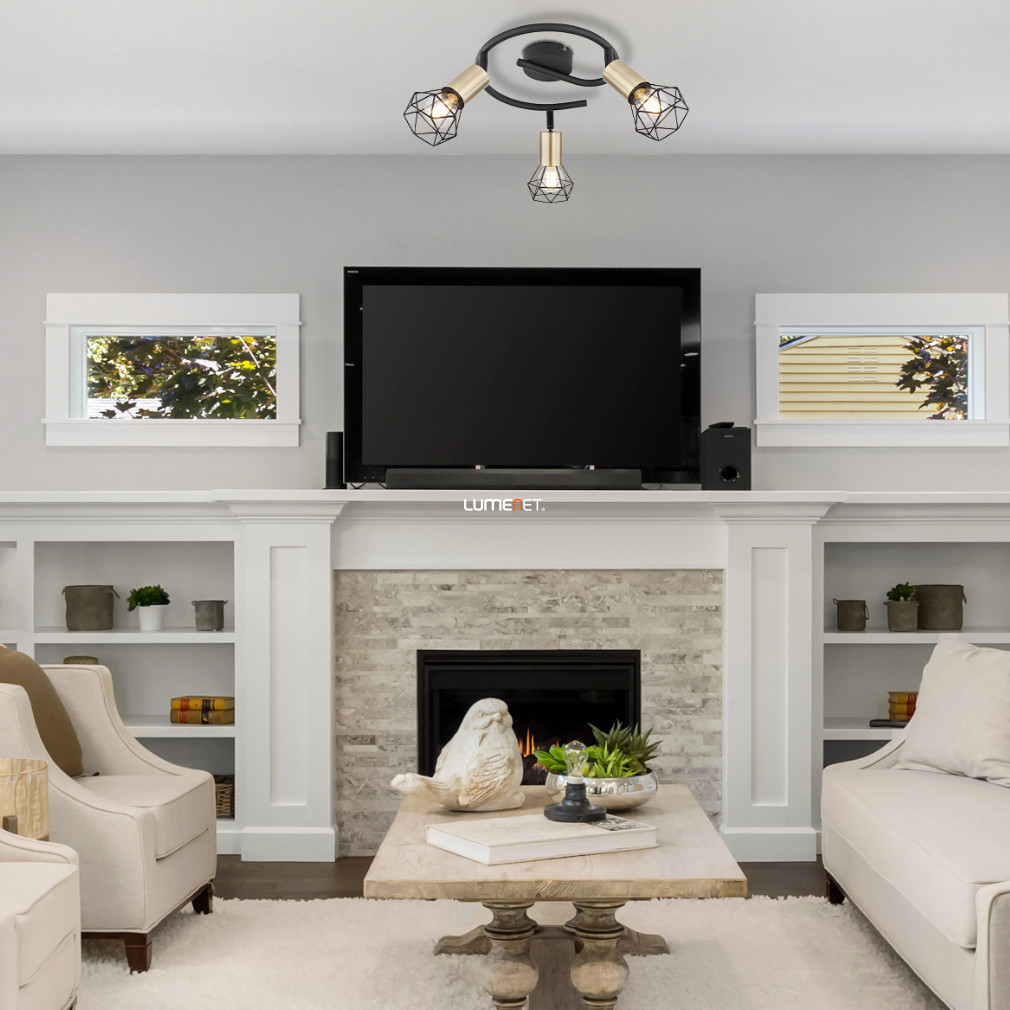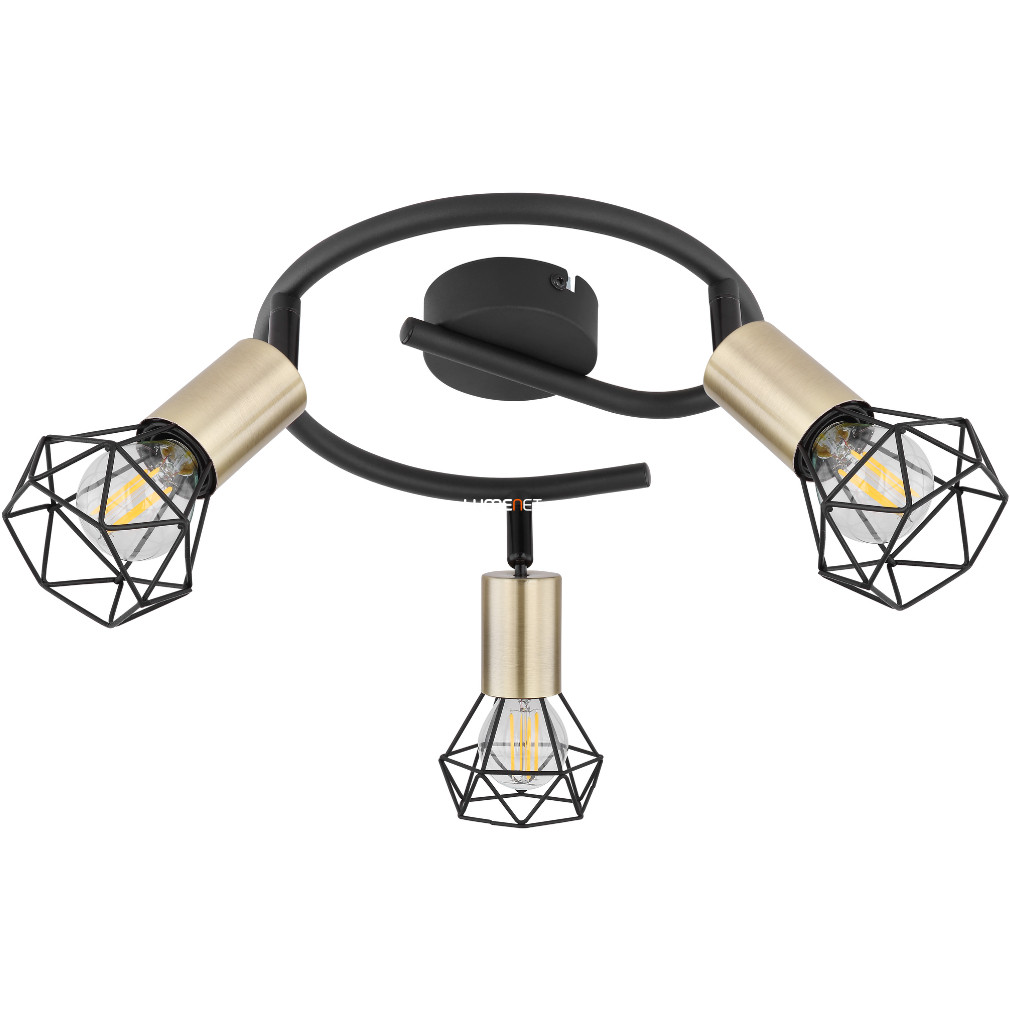 Mennyezeti spot lámpa, három foglalattal, fekete-sárgaréz - Xara Globo 54802S-3AB